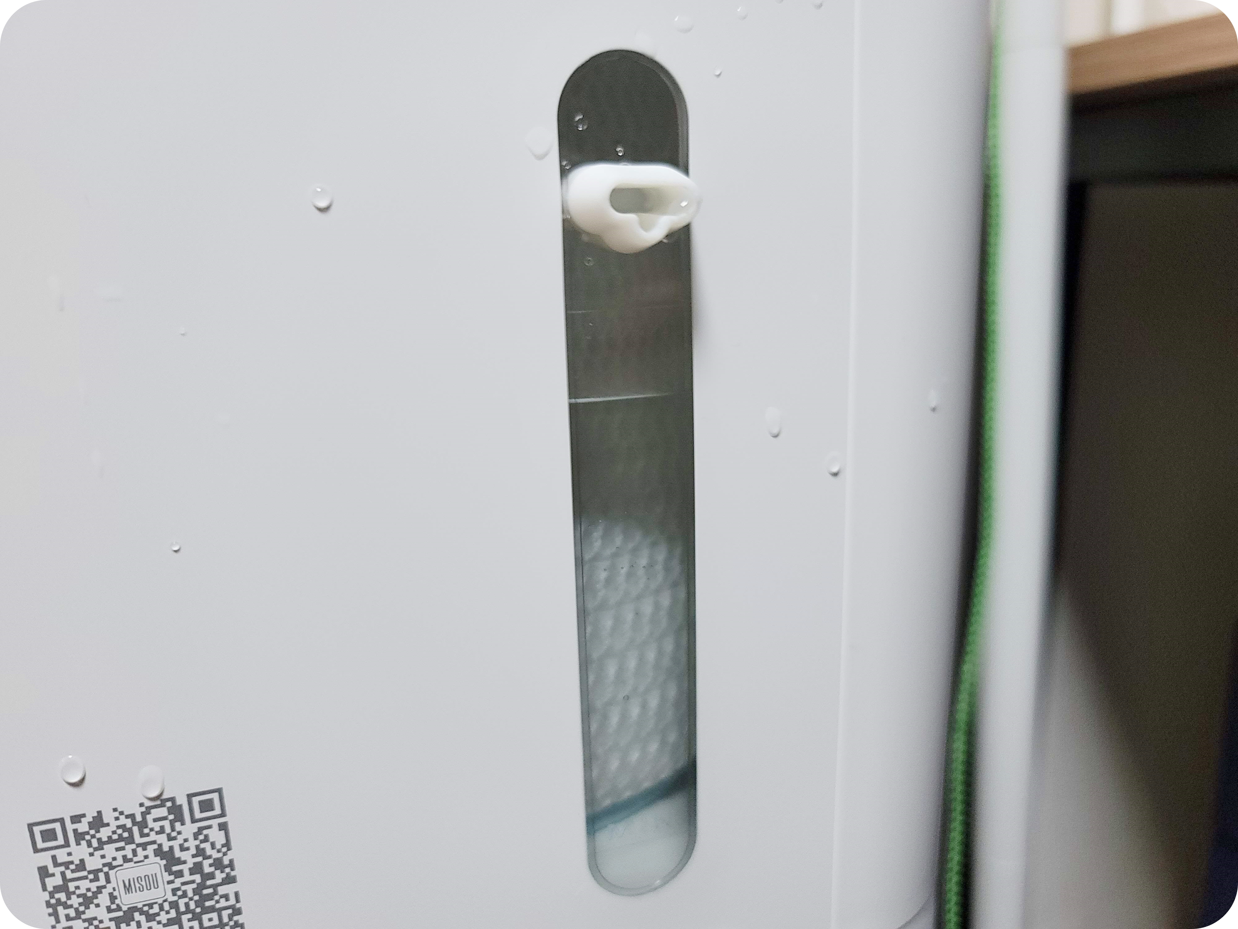 또 한 가지 바뀐 점이 있어요. 이전 제품은 수위를 확인하기 위해서는 뚜껑을 열어서 직접 물의 양을 확인해야 했는데요. 새롭게 바뀐 제품은 우측에 투명하게 되어있어 수위를 확인하기 편해졌어요.