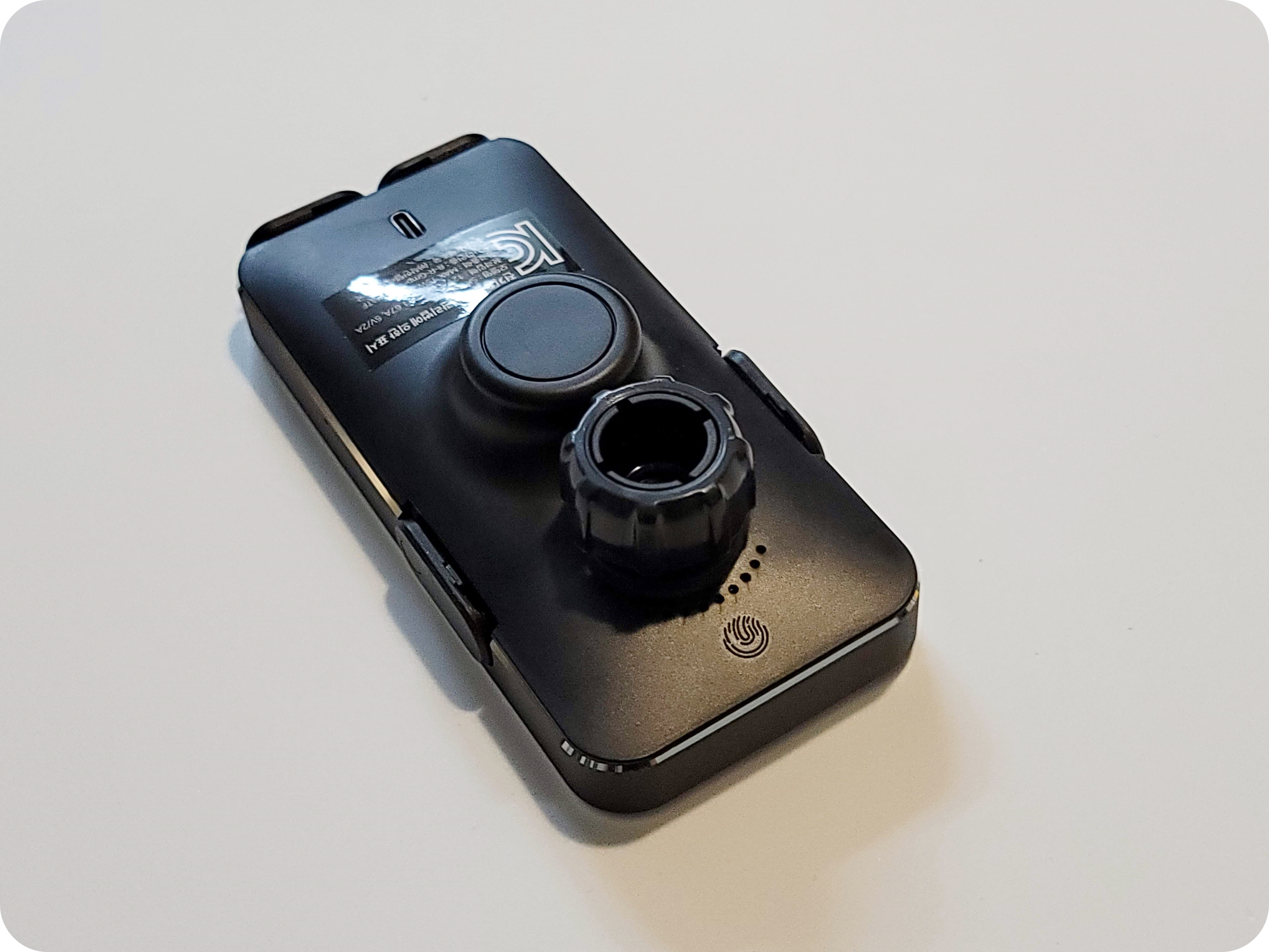 뒷면을 자세히 보면 지문 모양으로 된 부분이 있어요. 이곳은 터치센서 부분으로 스마트폰을 뺄 때 터치하는 부분이에요. 밑에서 어떻게 사용하는지 올려볼게요.