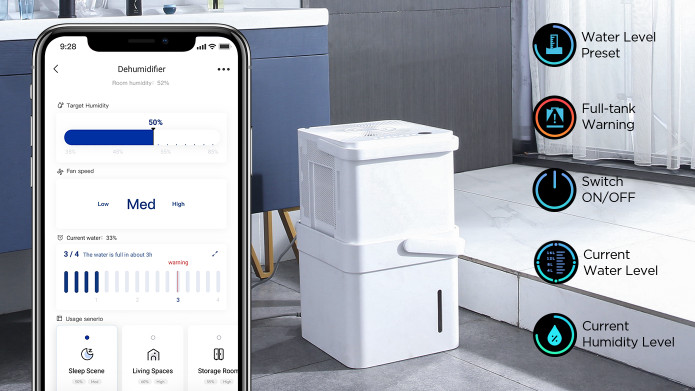 Extended design for expanded capacity. Monitor humidity & water level all at your fingertips. | Check out 'Midea Cube: World's First Extended Dehumidifier' on Indiegogo.