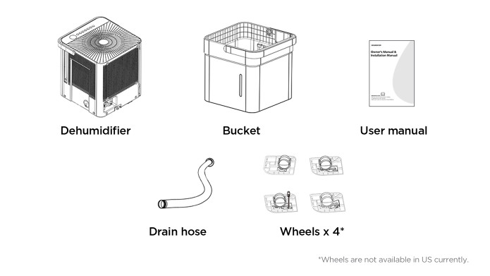 통 안에 제습기를 넣어서 보관을 할 수 있어 공간 효율은 물론 이동까지 편하게 되어있습니다. 여기에 기본 구성품에 4개의 바퀴를 제공해줘 집안 곳곳에 이동을 하기 쉽도록 만들어져 있어요.