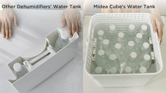 일반적인 제습기들은 4~6L 정도의 물통을 가져 조금만 시간이 지나도 만수가 되어 물을 비워줘야 하는 번거로움을 큐브는 해결해주네요.