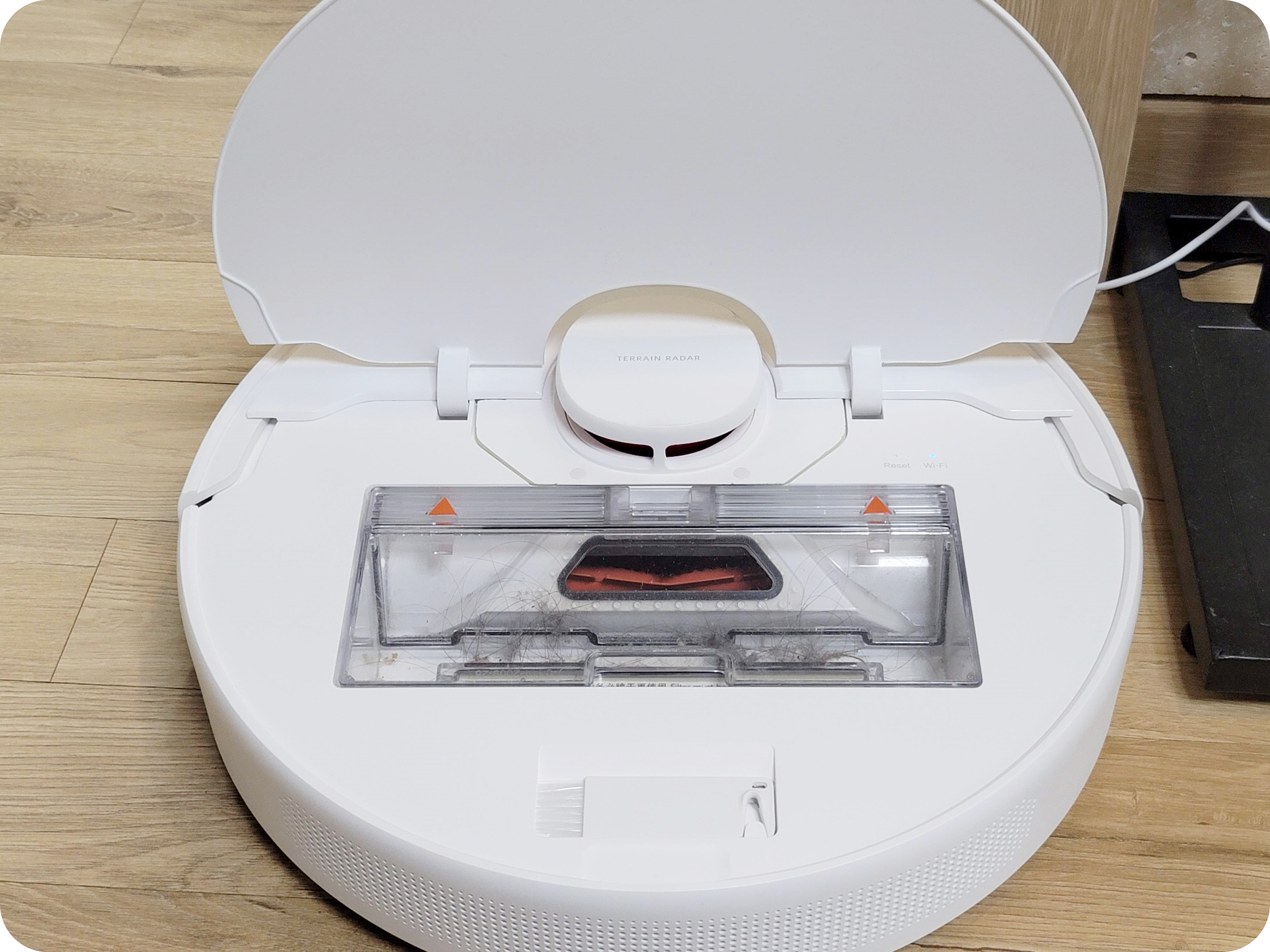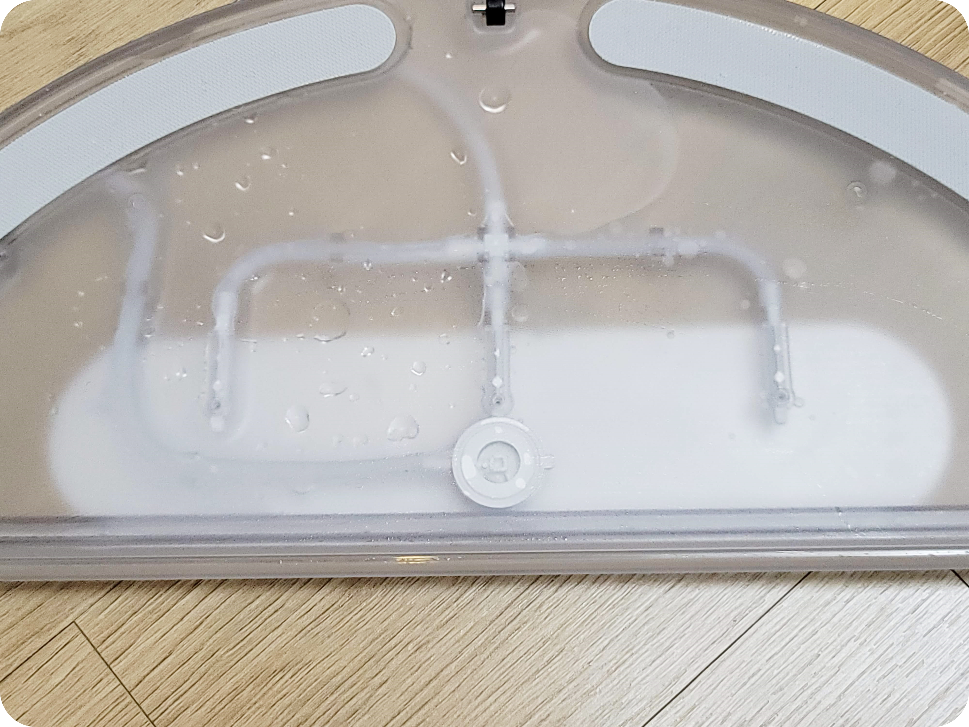 물걸레의 청소력은 준수한 편이었어요. 의외로 바닥에 잘 밀착이 되는 느낌이었어요. 그렇지만 어디까지나 보조적으로 끌고 다니는 수준의 물걸레질이라 바닥의 묵은 때는 지우지 못해요.