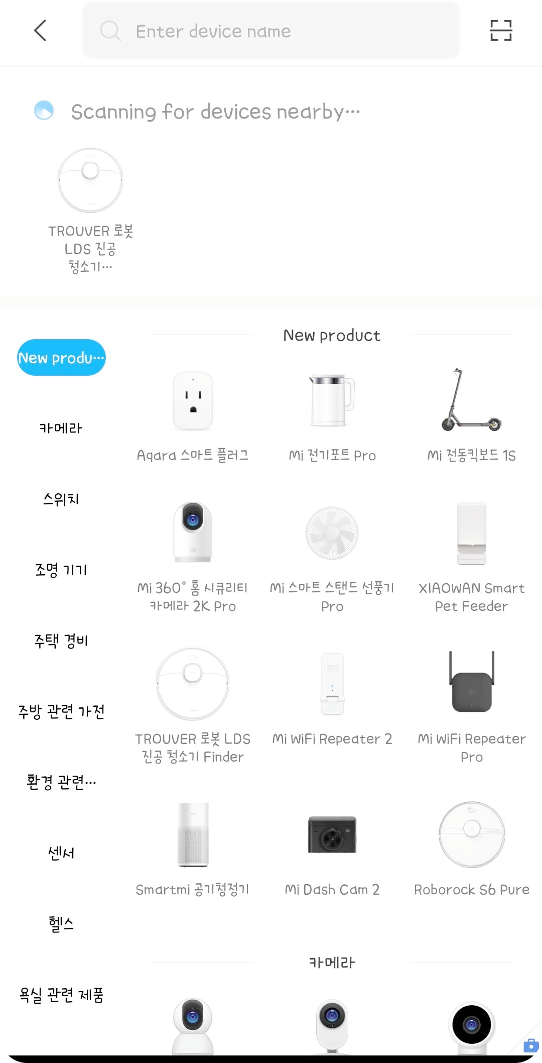 다만 처음 한국 서버에 기기를 추가시켰을 경우 바로 제품이 뜨지 않기 때문에 등록 완료하고 약 30분~1시간 정도 후에 미홈앱을 다시 들어가 보시길 권할게요. 저는 40분 정도 후에 들어가니 목록이 정상적으로 나왔습니다.