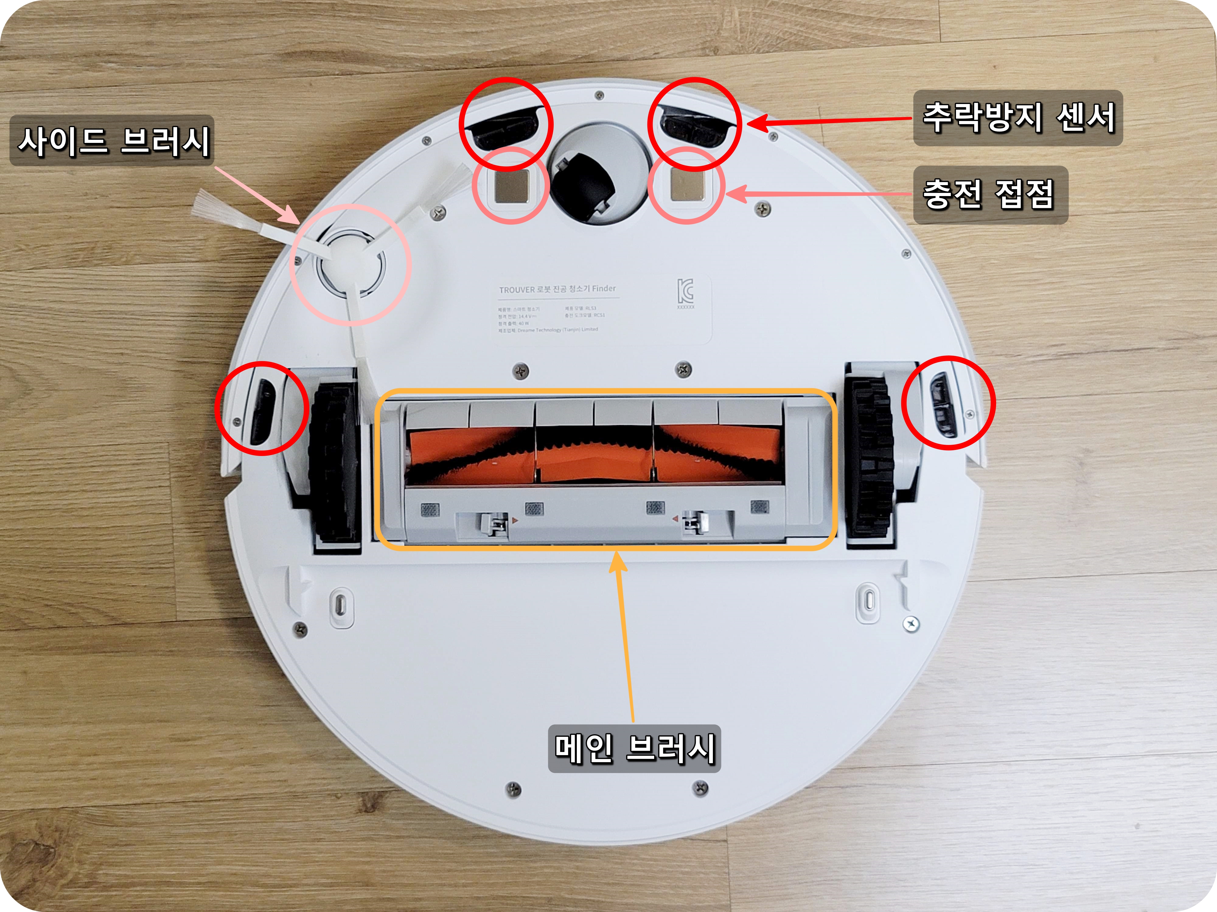 바닥면을 보면 여느 로봇청소기와 크게 다르지 않아요. 깔끔하게 잘 되어있죠? 갖출 건 다 갖춘 로봇청소기라 보면 될 것 같아요.