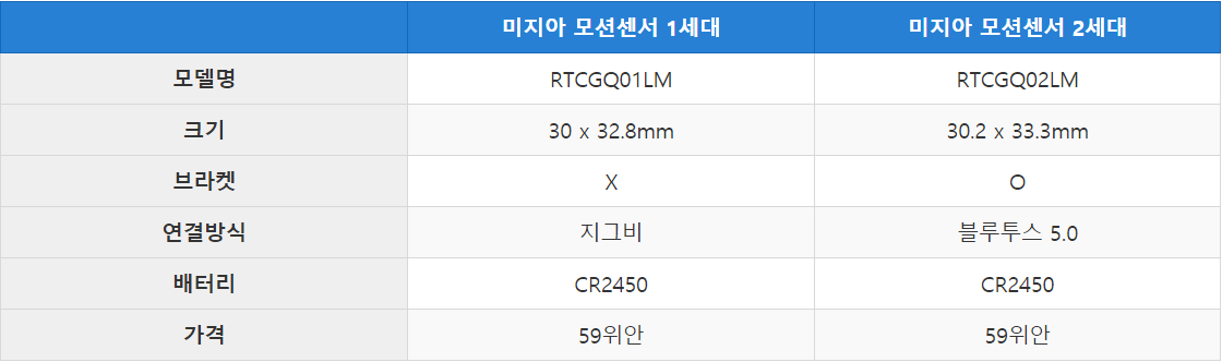 | 미지아 모션센서 1세대 | 미지아 모션센서 2세대 | |