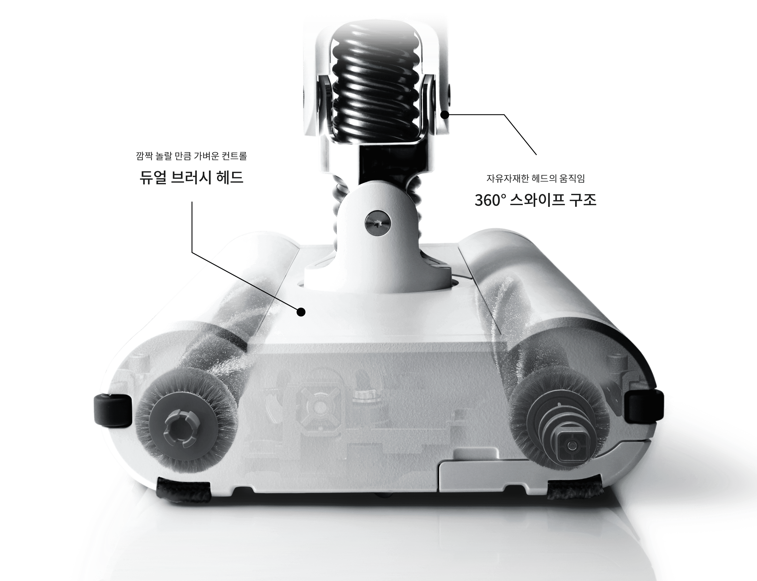 발뮤다 더 클리너는 청소를 하고싶게 만들겠다는 철학으로 출시가 되었는데요. 마치 물 위를 흐르듯 부드럽게 회전하는 듀얼 브러시와 헤드가 이번 더 클리너의 핵심적인 부분이라고 볼 수 있겠습니다.