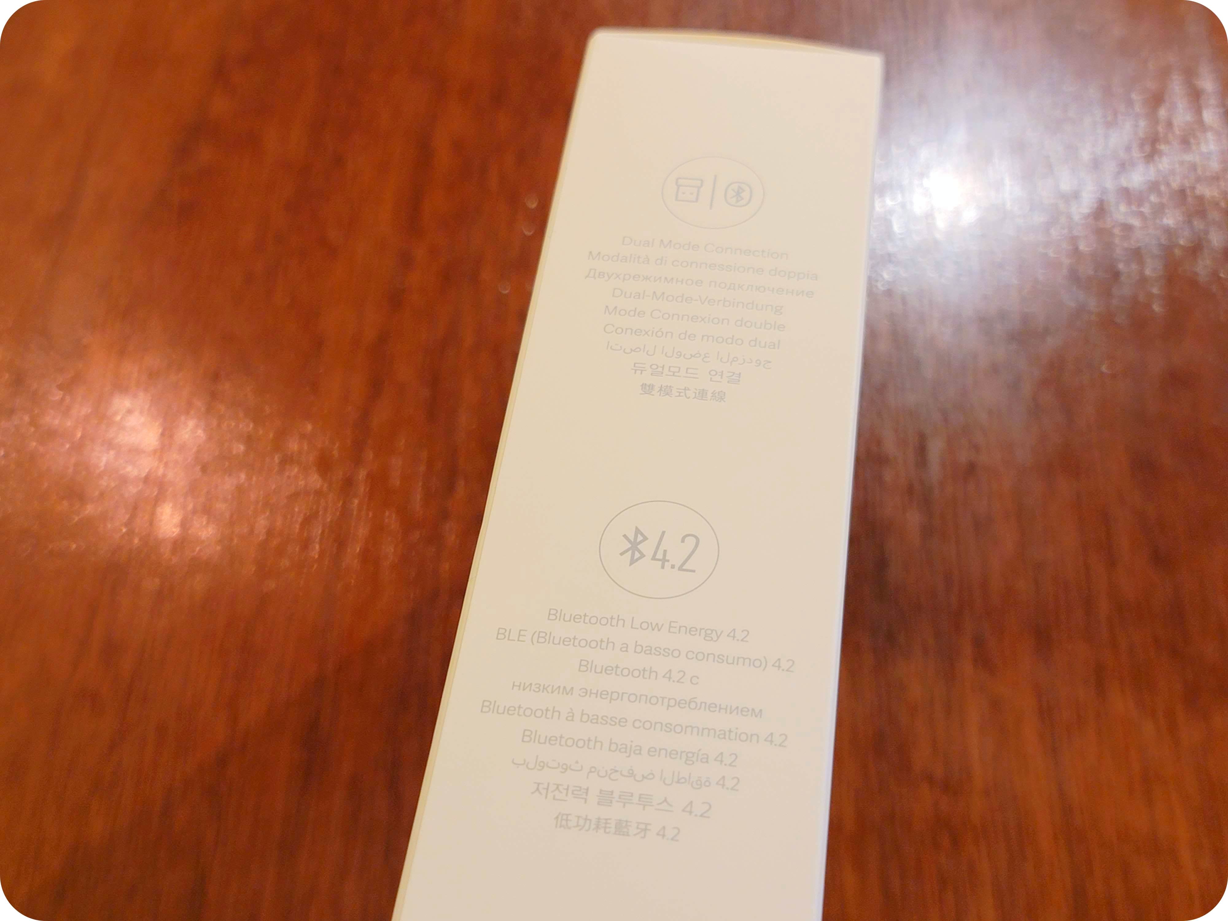 이 제품은 블루투스와 2.4GHz 리시버 사용을 지원한다. 듀얼모드라는 제품명은 여기에서 나온 것이다. 블루투스 4.2를 지원하며 무소음, 1300 DPI 표기가 있다.