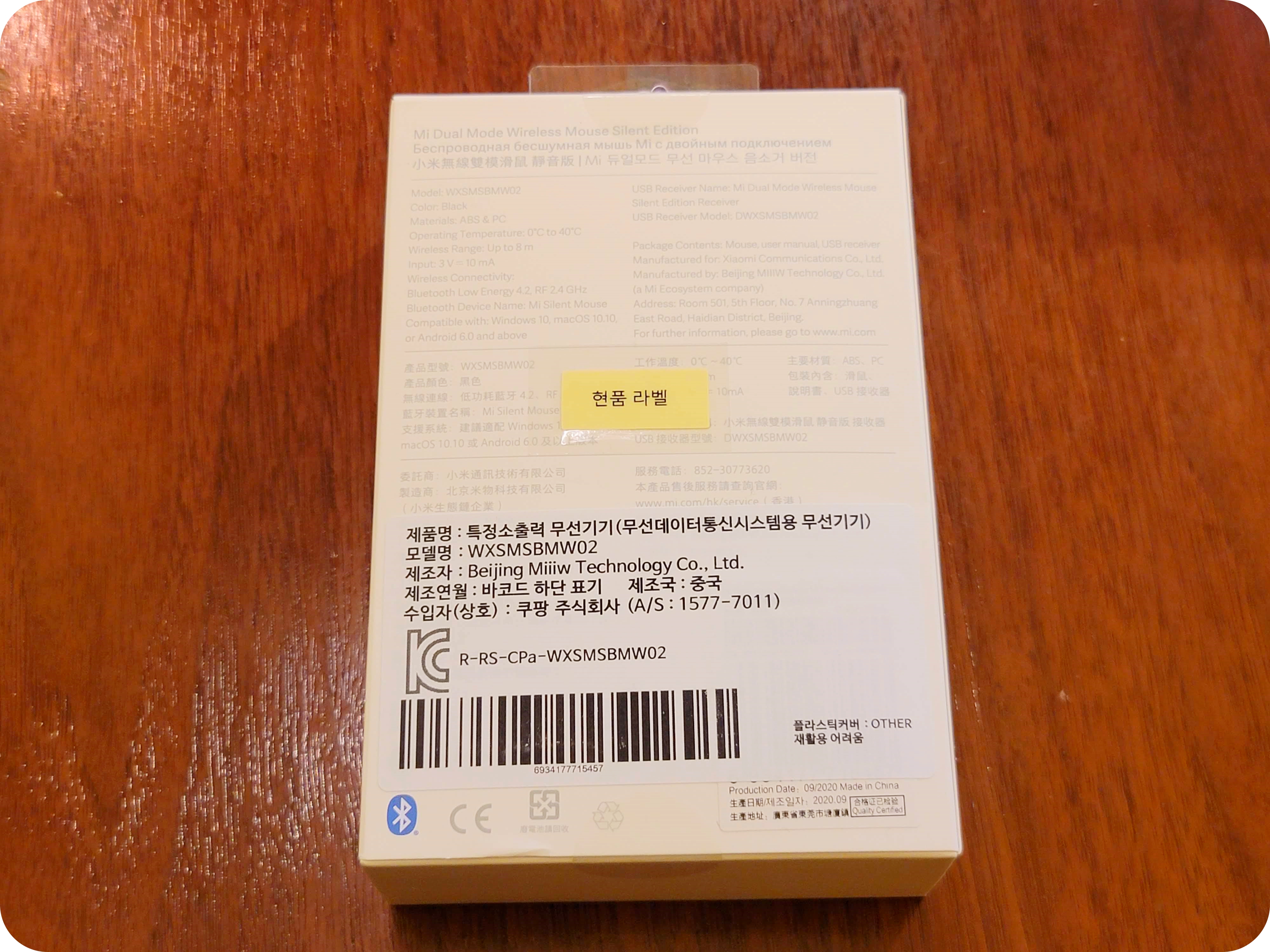 쿠팡에서 직수입을 한 제품이라서 그런지 쿠팡 주식회사 표시가 있고 KC인증 번호도 있다. 근데 왜 '현품 라벨'이라고 스티커가 붙어있는지는 모르겠다.