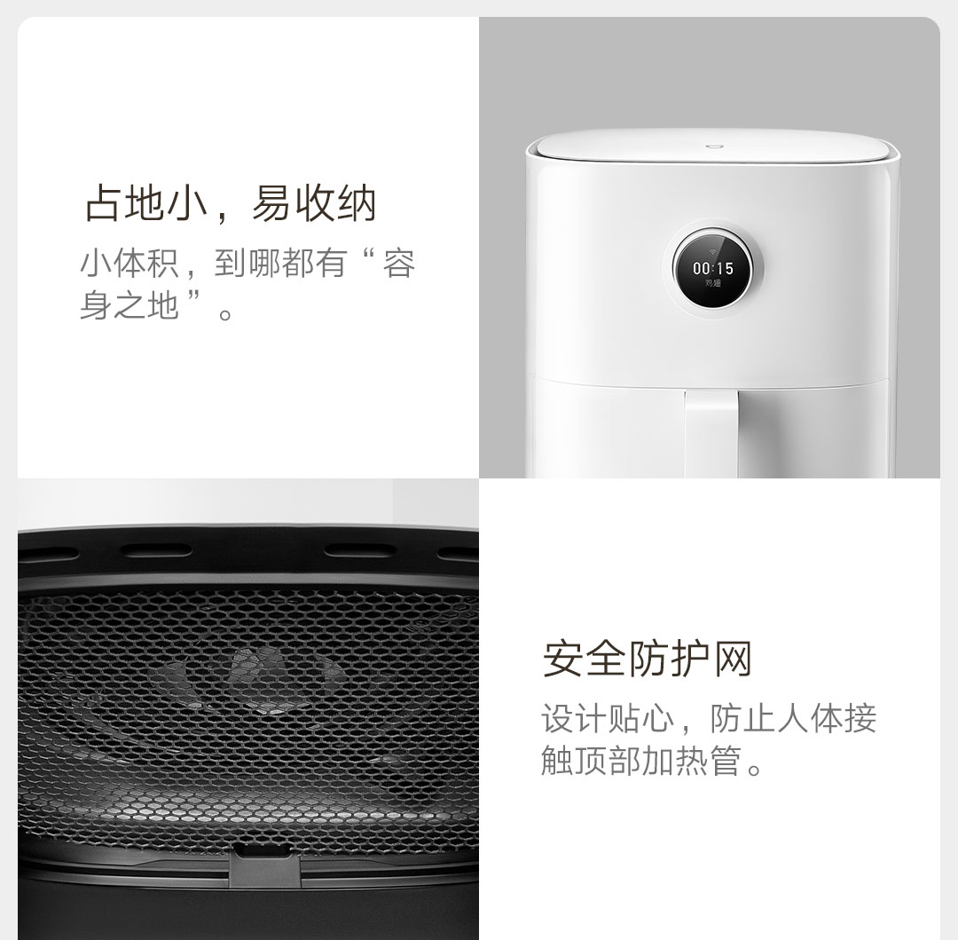 그러나 샤오미 제품답게 기능적인 부분에서는 꽤나 고급스럽다. 먼저 OLED 디스플레이를 탑재하여 직관적인 인터페이스로 불편함 없이 사용이 가능하며 'Mi Home' APP을 연동하여 원격으로 에어프라이어를 작동할 수 있을 뿐 아니라 50여 가지의 저장된 레시피를 바로 적용하여 이용할 수도 있다.