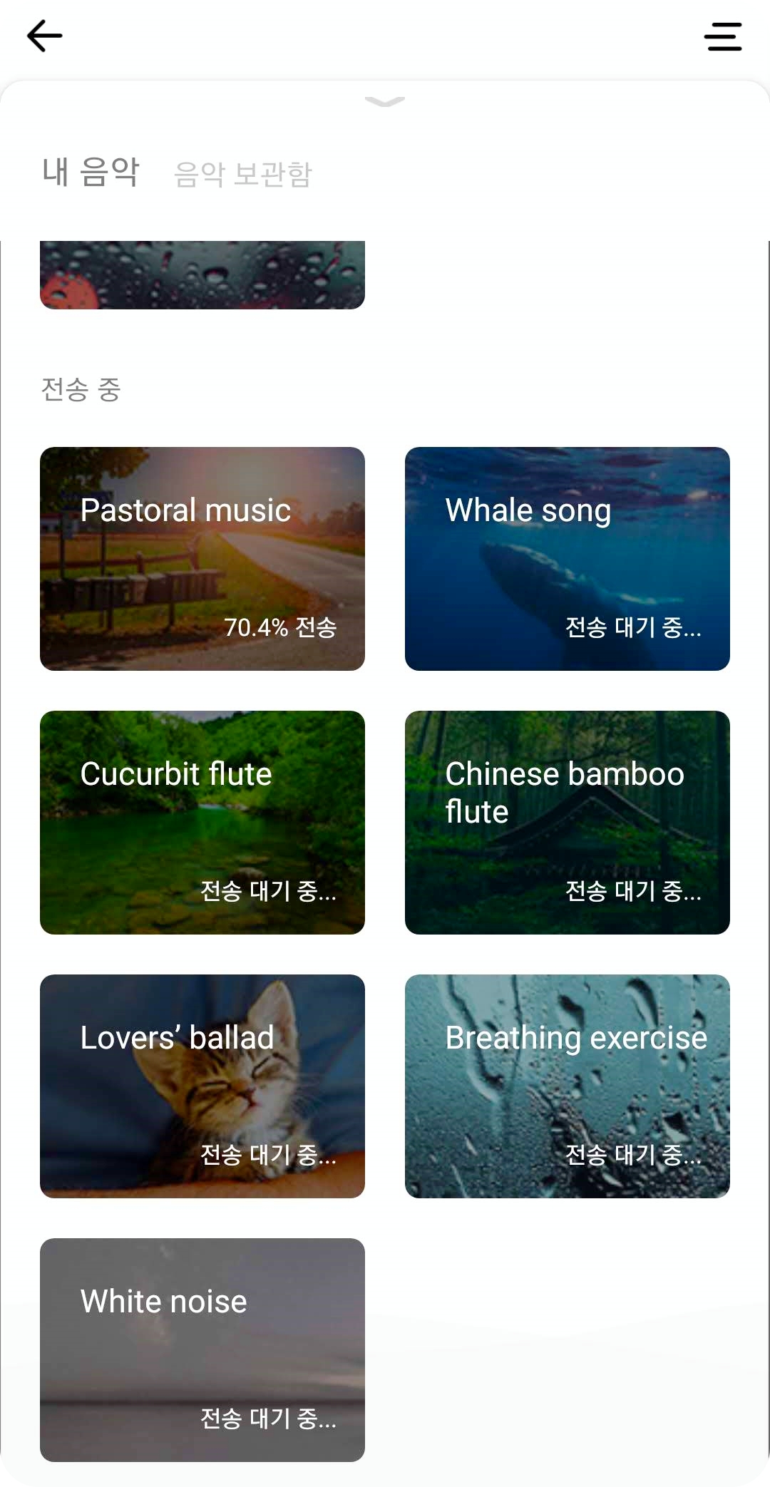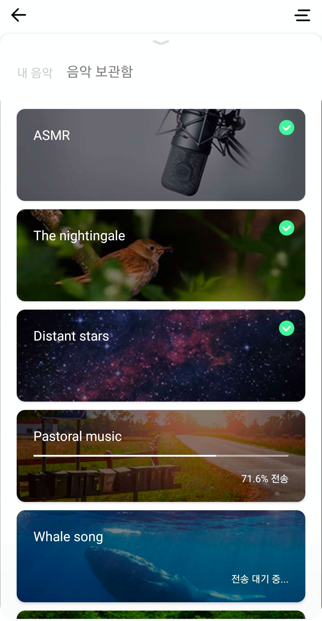 젠버즈를 ZEPP 어플과 연동하면 다양한 음악들을 설정할 수 있다. 수면에 도움이 되거나 공부시 집중에 도움이 되도록 ASMR이나 백색소음 등을 넣어놓은 것인데 종류가 상당히 적다. 게다가 기본으로 사용할 수 있는 음악은 몇 종류 안되며 추가로 다운을 받아야 하는데 저전력 블루투스를 이용해서 그런지 상당히 오래 걸린다.