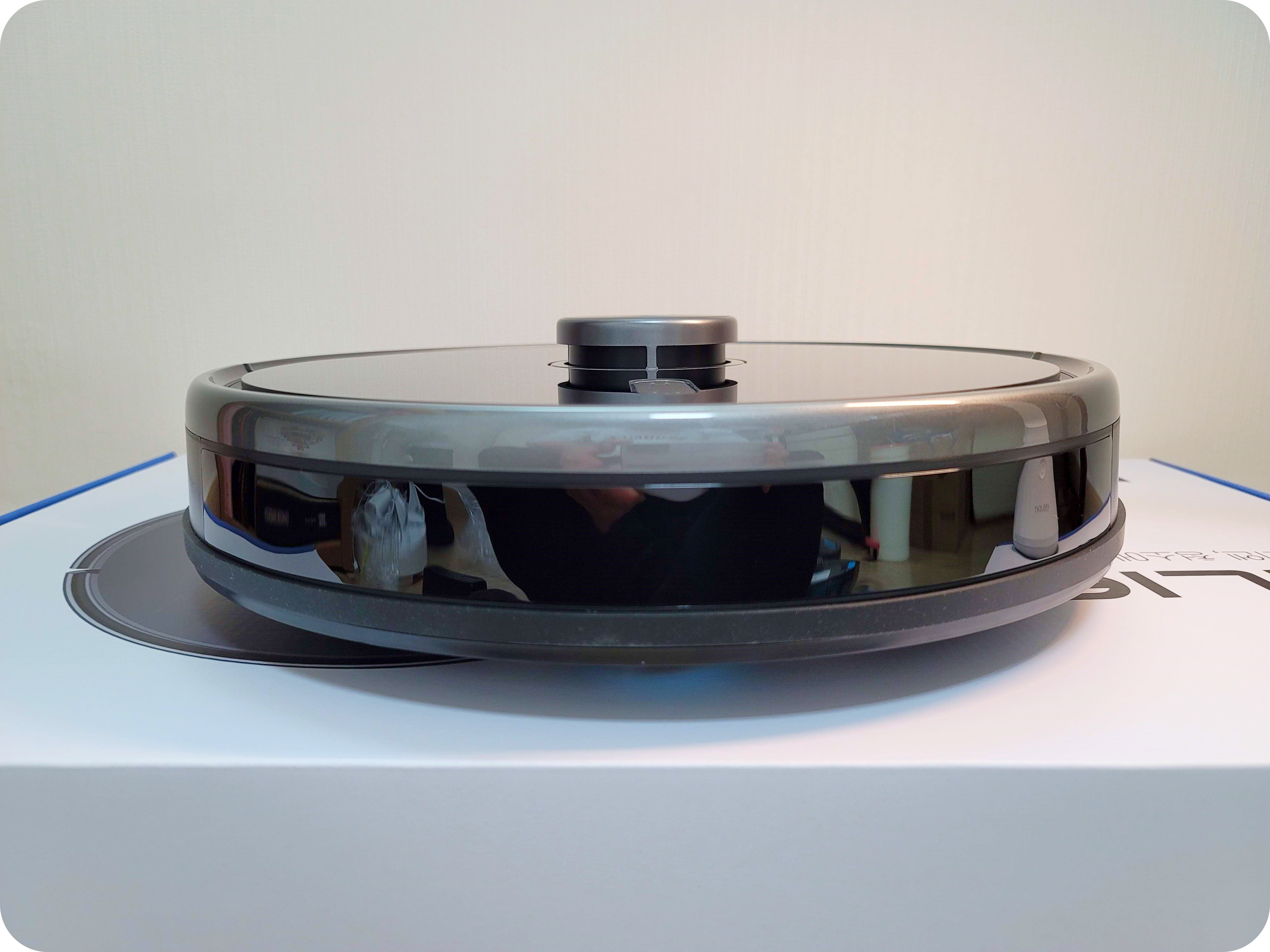 여러 로봇청소기를 써봤지만 윗면은 확실히 무광보다는 유광이 고급스럽다. 인테리어에 영향을 미치지 않는 고급스러운 클리엔 R9.