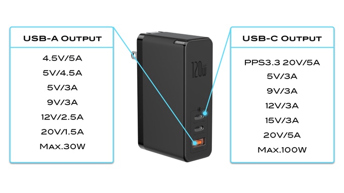Baseus GaN2 Pro 120W 제품은 다양한 충전방식을 지원합니다.