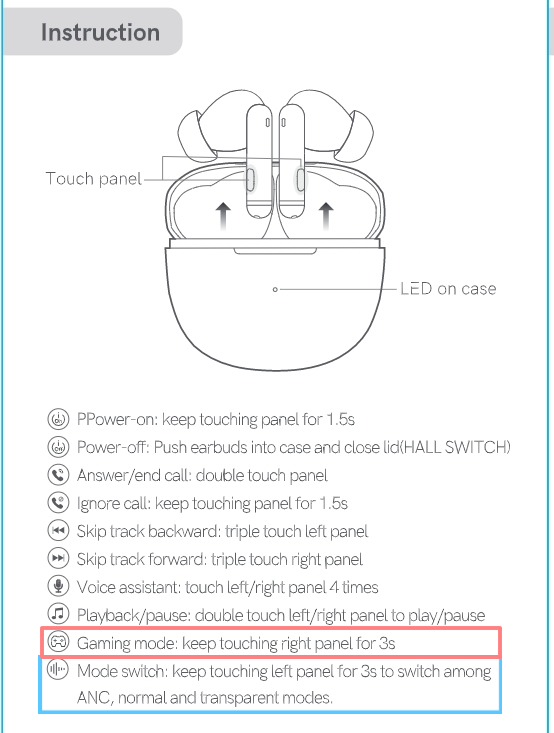 살펴볼 수 있는 정보로는 게이밍모드를 지원하며 ANC, 노멀, 트랜스페어런트(외부소음 듣기) 기능을 제공하는 것이 확인되었다.