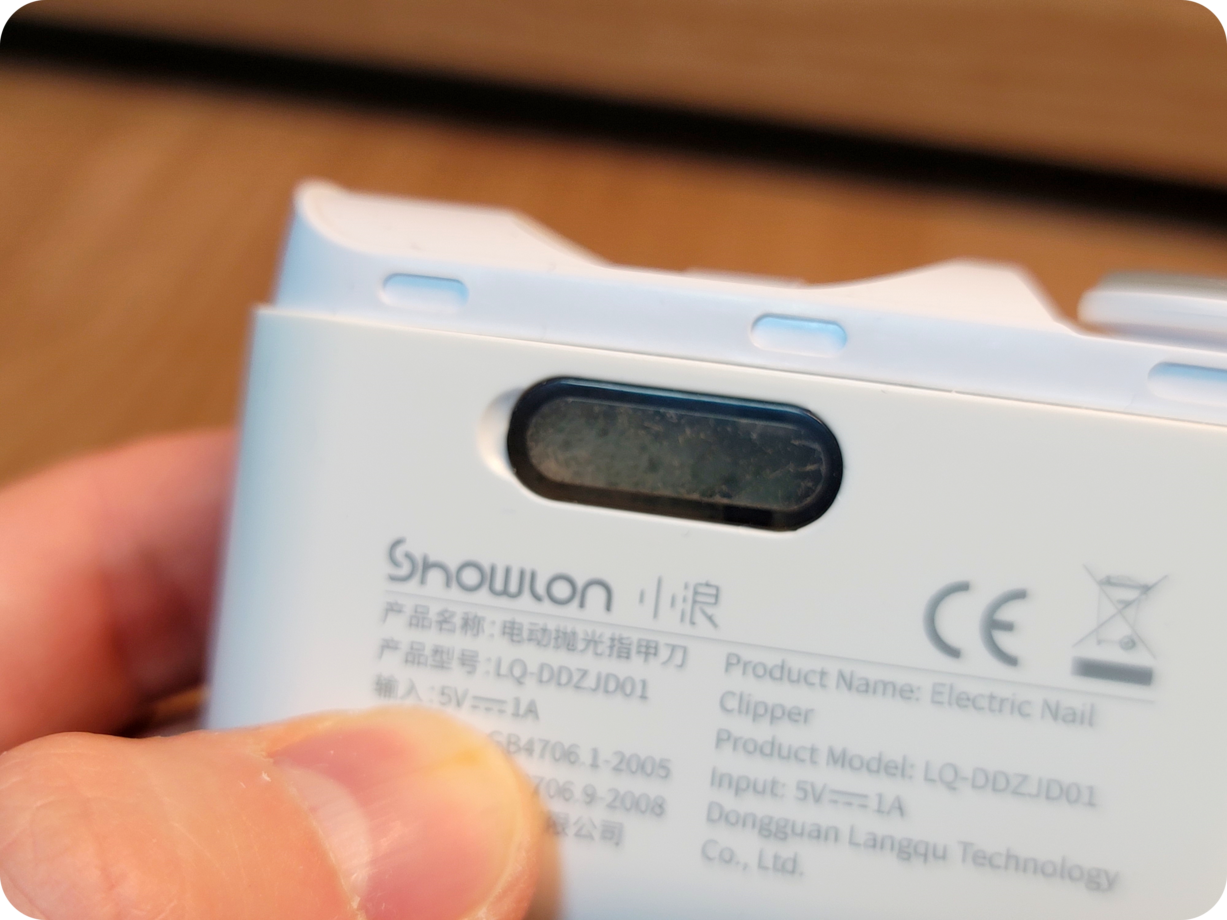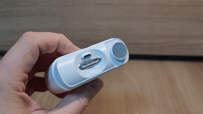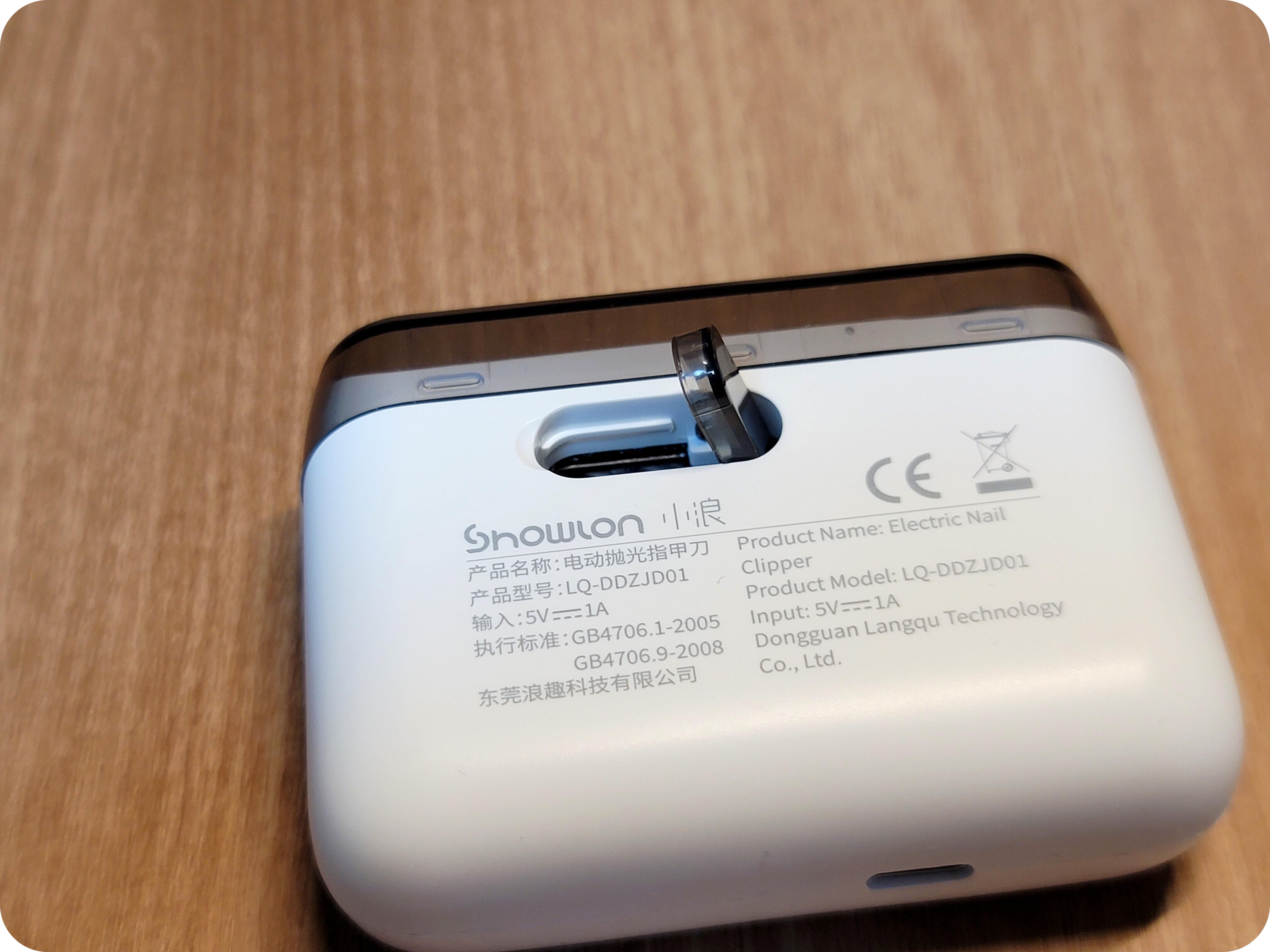 제품 아래쪽에는 USB-C포트가 있고 이곳으로 충전을 할 수 있다. 한 번 충전으로 최대 90일의 사용이 가능하며 40여 번 정도의 손톱을 깎을 수 있다고 한다. 아무튼 충전식이라는 점이 매우 편리하다.