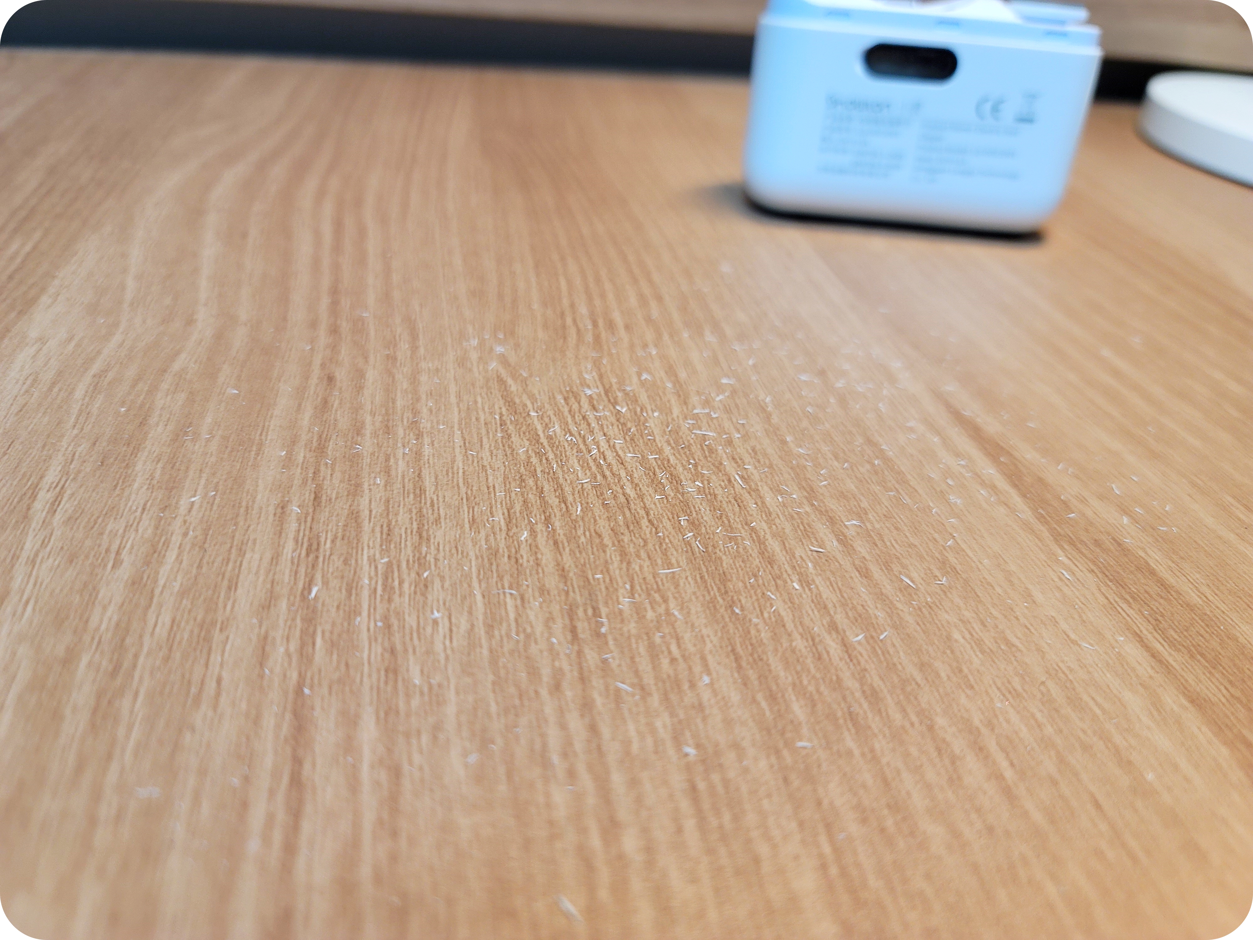 손톱을 깎아내면서 가루들은 기계 안으로 들어가지만 일부는 바닥으로 떨어진다. 그래도 깎은 자리 바로 아래로 떨어지기 때문에 이 부분만 치워내면 되어서 기존의 손톱깎이처럼 튀지 않는 것이 마음에 들었다.