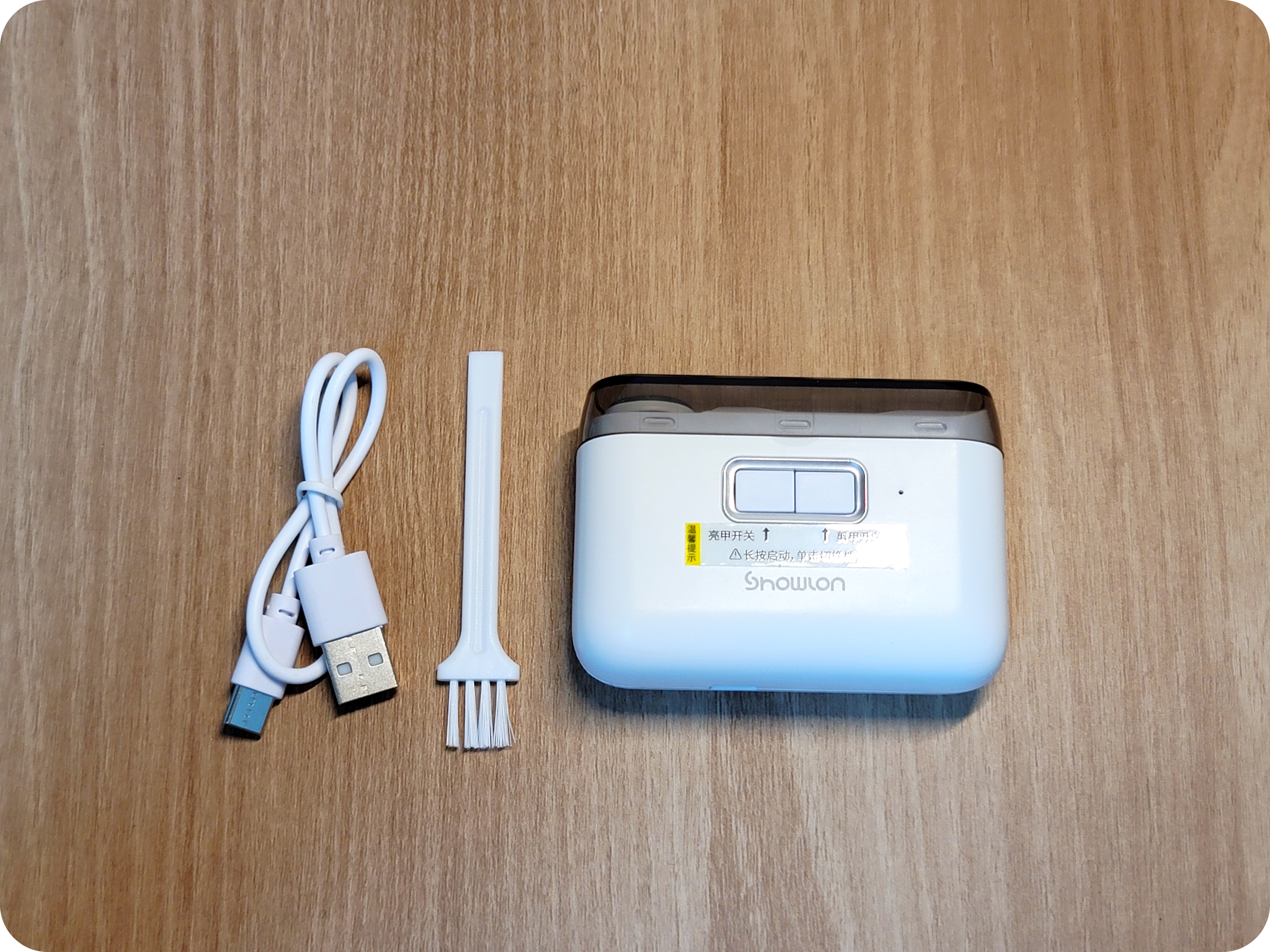 구성품은 제품(본체), C타입 케이블, 브러시로 깔끔하게 구성되어 있다. 이전에도 느꼈지만 이제는 이렇게 사소한 제품이라도 USB-C타입의 포트를 사용하는 것이 너무 만족스럽다.