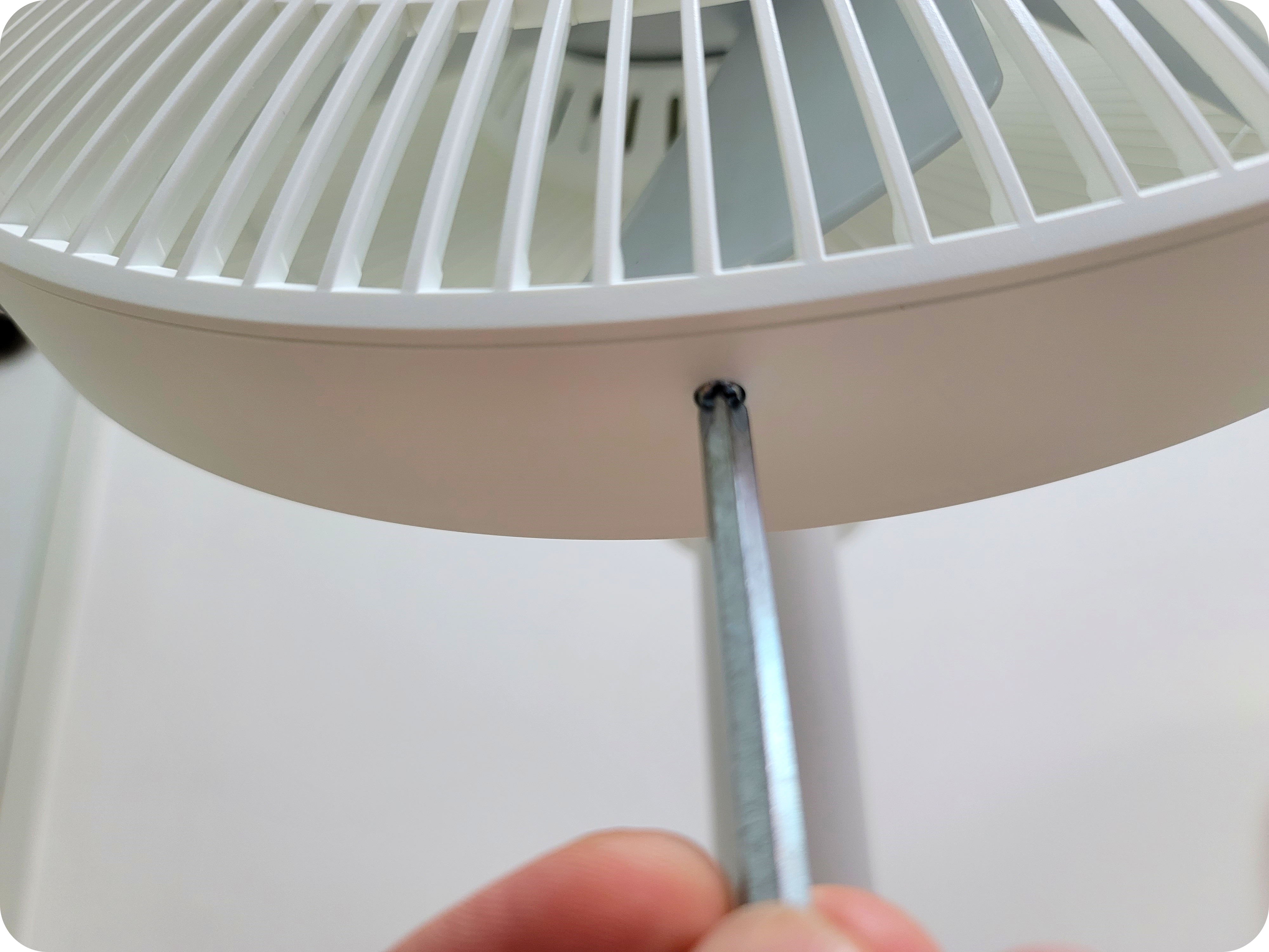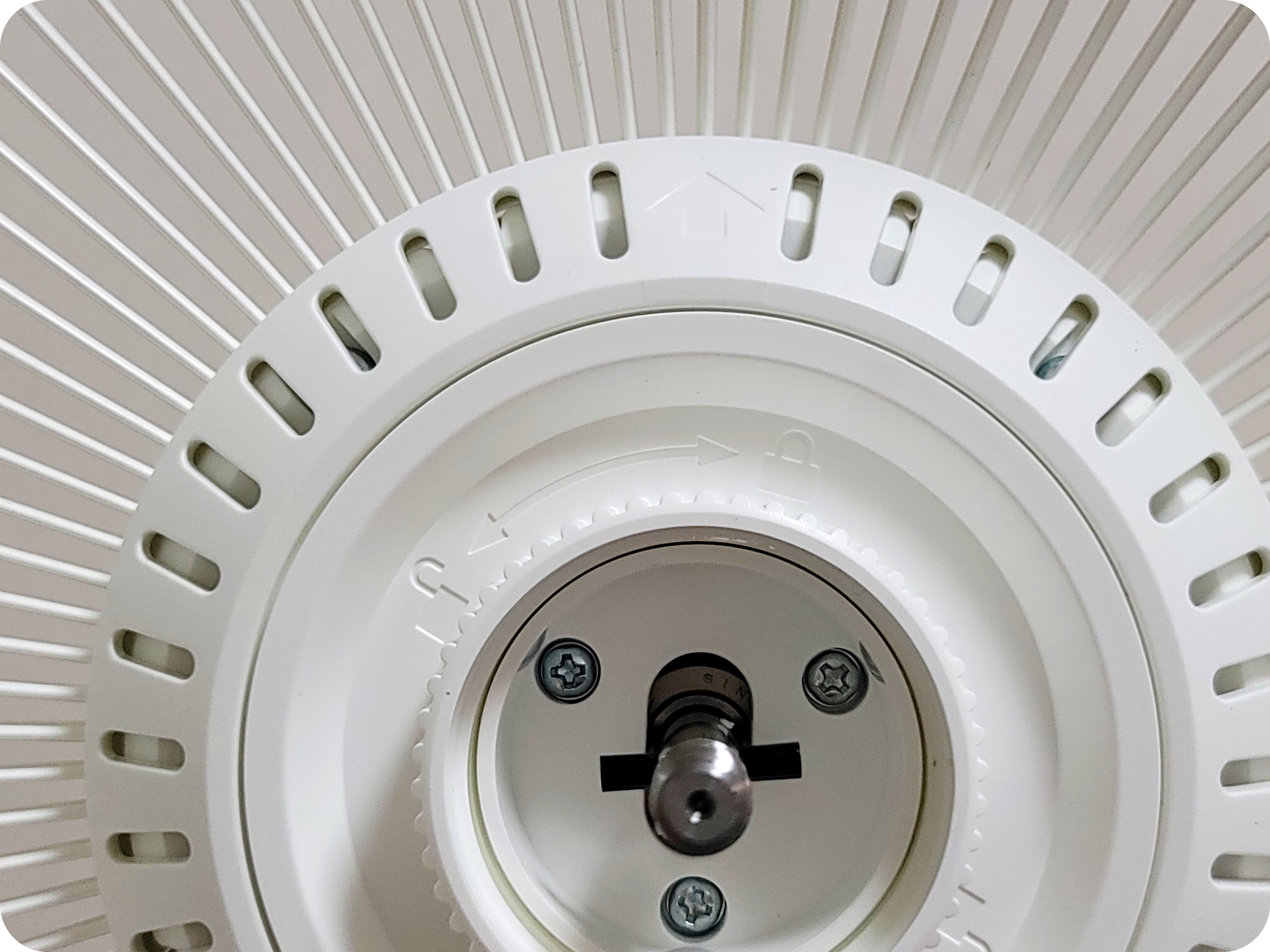 마지막으로 안전망을 끼워준뒤 우측으로 살짝 돌려주면 고정이 되며 고정 이후에는 아래쪽에 있는 나사를 조여주면 날개망이 완벽하게 고정이 된다. 선풍기 조립을 한 번이라도 해본 사람이라면 이 과정이 크게 어렵지 않으니 큰 걱정은 하지 말자.