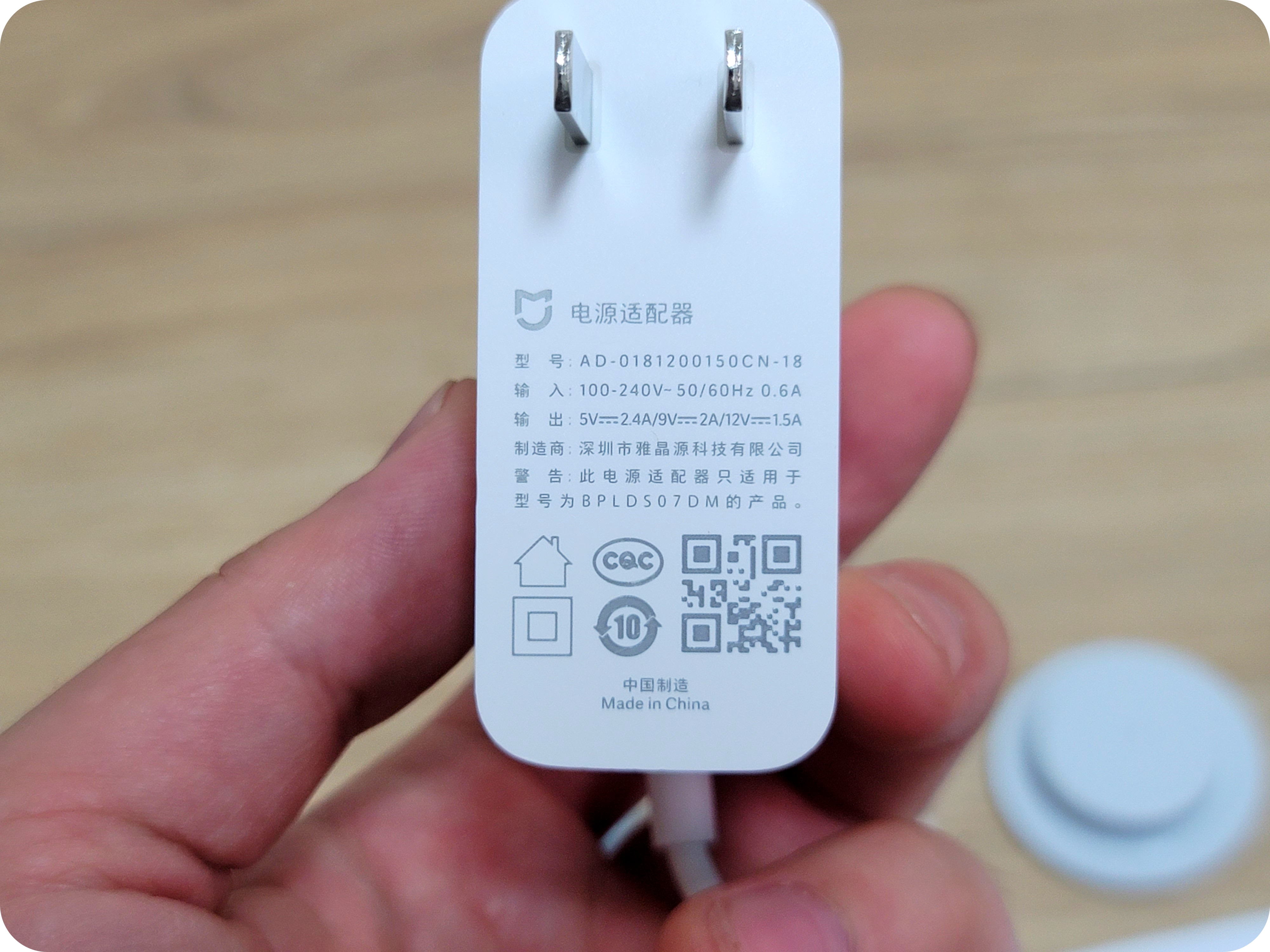 전원 어댑터의 출력은 5V/2.4A, 9V/2A, 12V/1.5A라고 적혀있으며 어디서 많이 본 어댑터 출력이다. 맞다. 스마트폰 충전기와 다를 것이 없는 충전기 스펙. 반대로 말하자면 이 어댑터가 아닌 스마트폰 충전기로도 선풍기 작동이 가능하다는 말씀!
