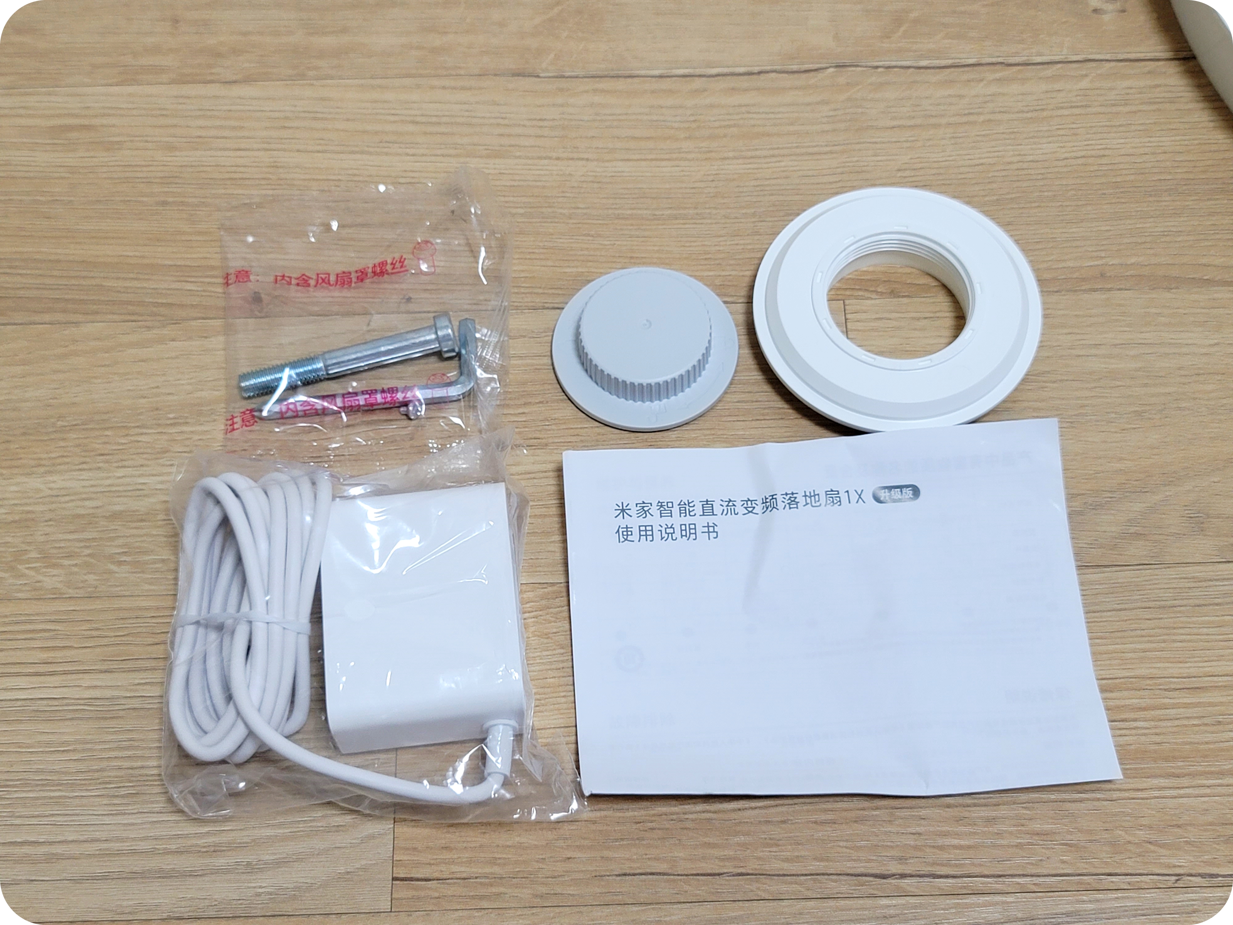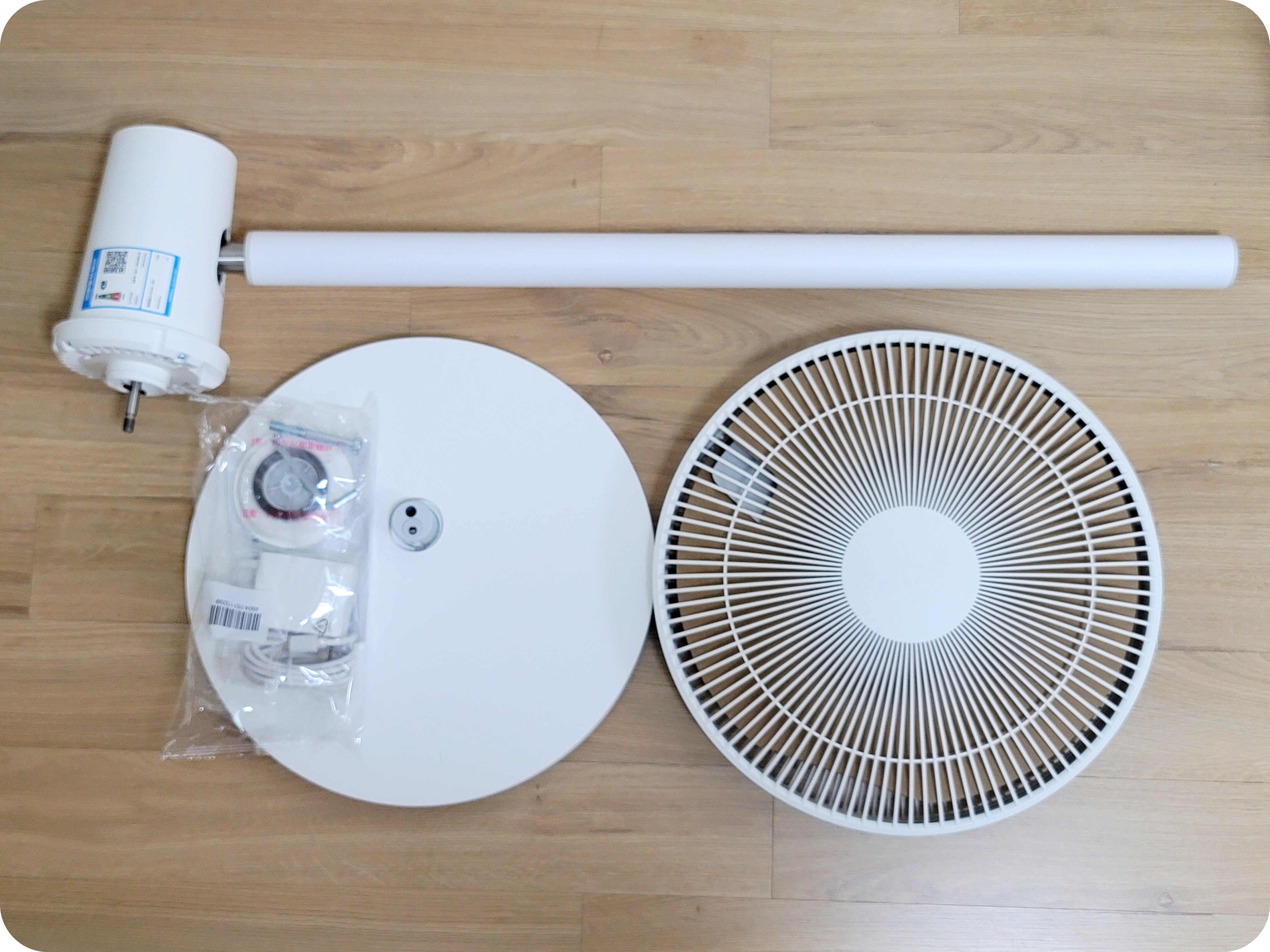 본체, 받침대, 날개와 망, 고정 부품들과 육각볼트와 렌치, 전원어댑터. 선풍기답게 구성품은 아주 간단하게 되어있었다. 그러면 조립을 해보도록 하자.