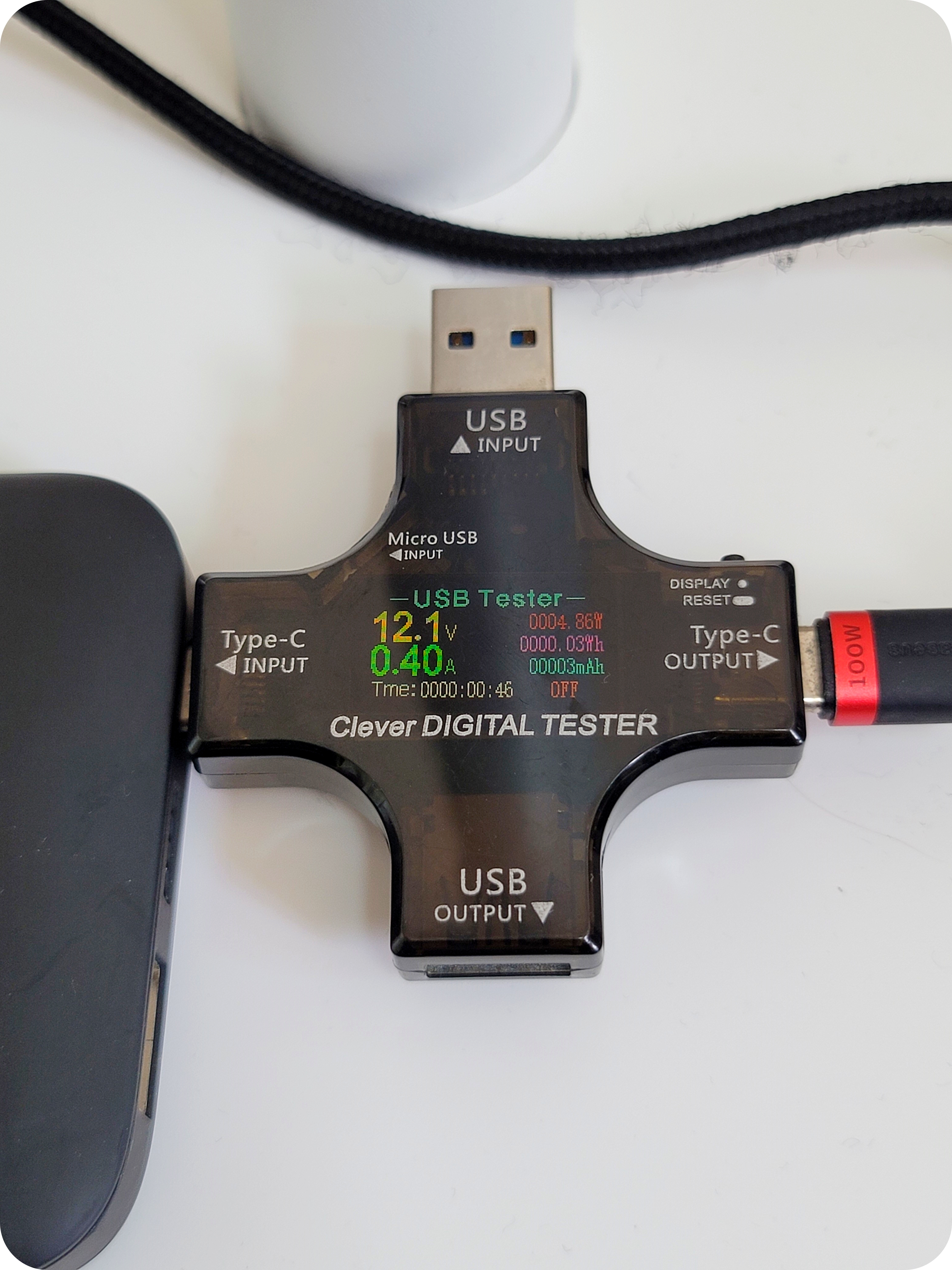 10,000mAh의 보조배터리를 이용하여 간단하게 작동시간을 테스트해 보았다. 4단(100단)의 경우 12~15W의 소비전력을 내주며 1시간 45분 정도에 작동이 중지되었다. 2~3단으로 이용을 하면 3~5시간은 충분히 이용할 수 있을 것으로 보이며 보조배터리 용량이 큰 것을 이용하면 훨씬 여유롭게 사용이 가능해 보인다.