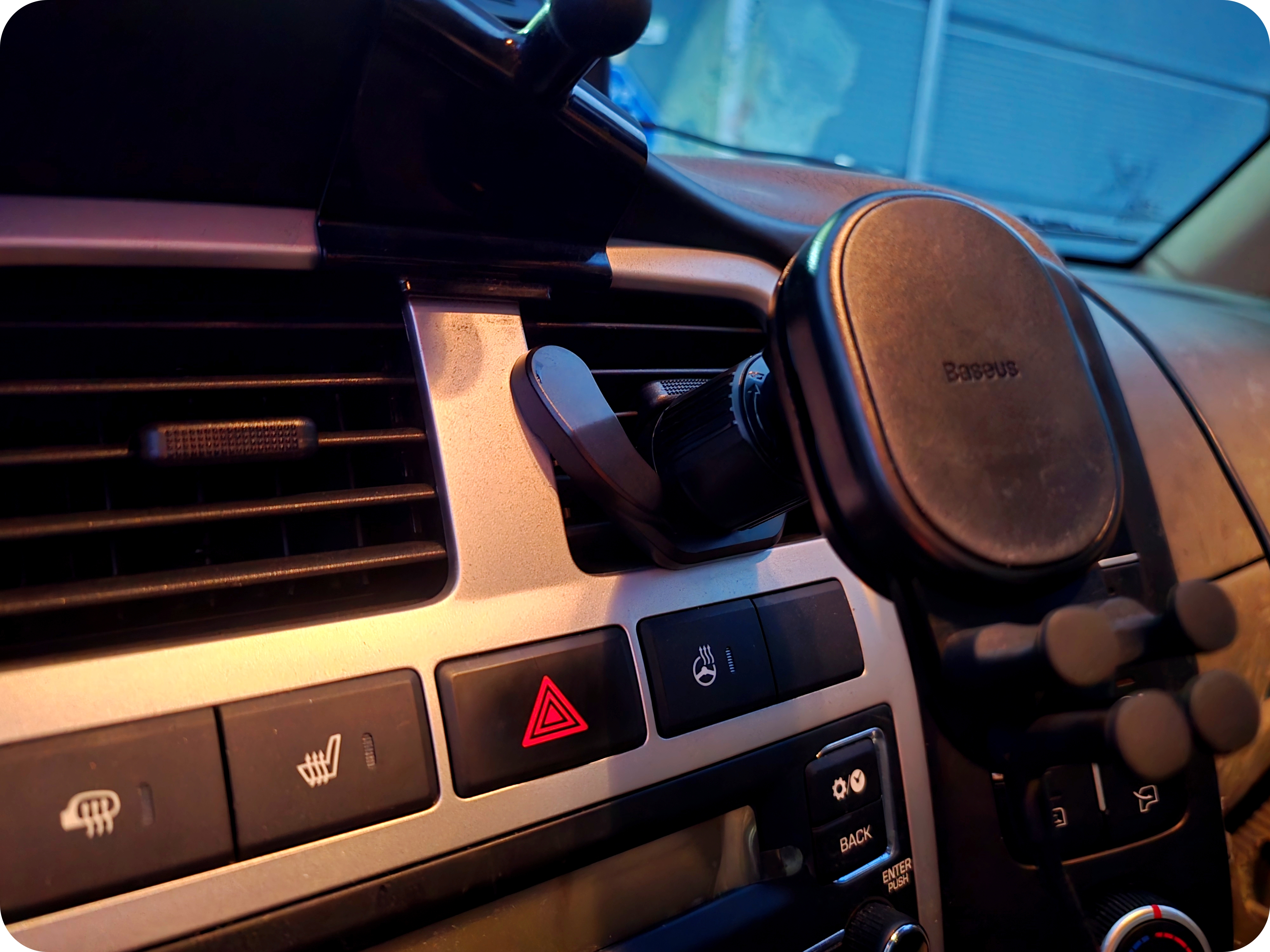 송풍구형 거치대의 경우에도 지지대의 크기가 커 공간을 많이 차지하기도 하지만 이렇게 거치대 자체의 크기도 커서 리뷰에는 핸들에 걸리기도 한다는 내용이 보였다. 송풍구와 핸들이 가깝거나 다른 악세사리들이 있다면 거치 시 간섭이 있을 수 있다.