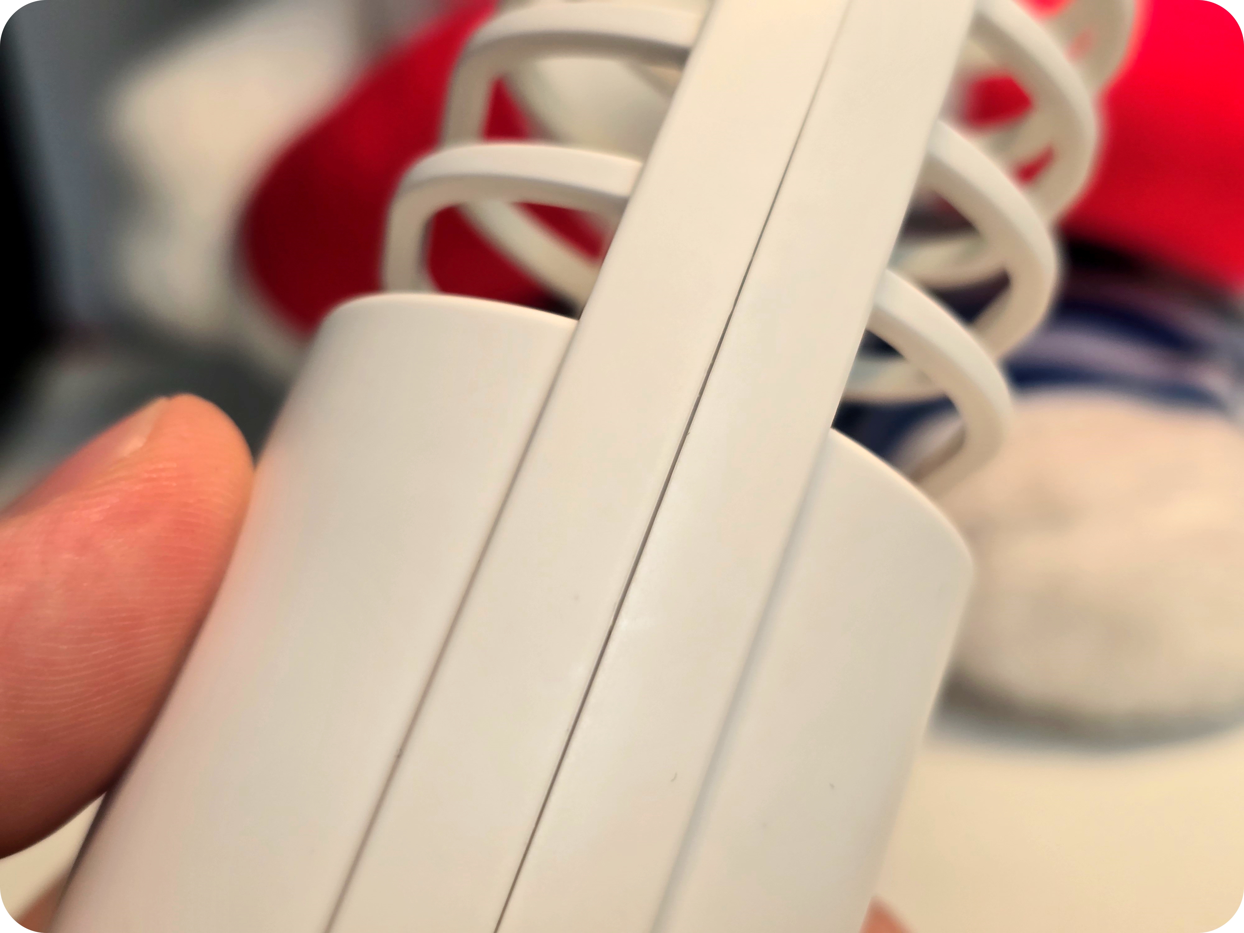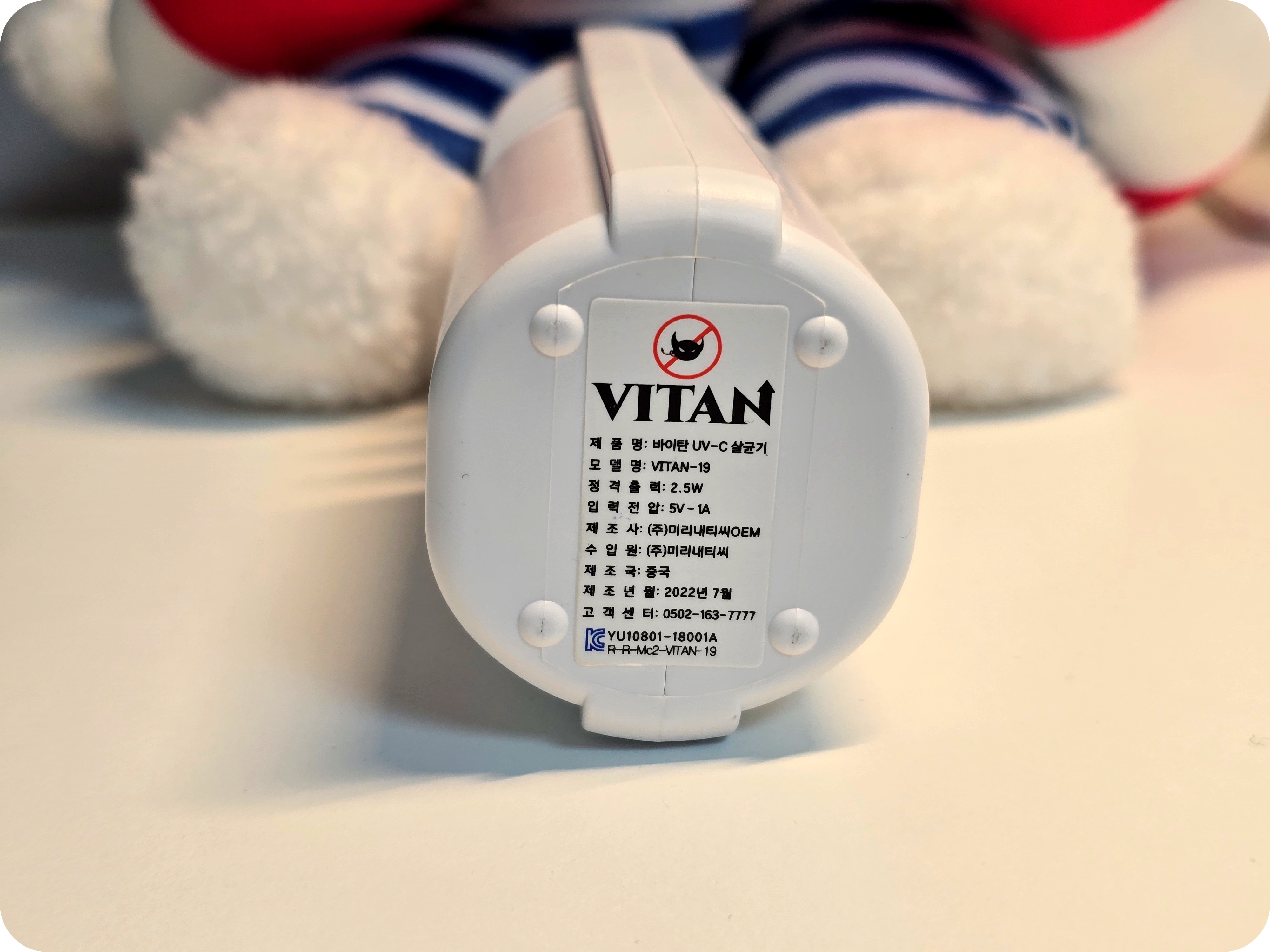 바이탄 UV 살균기는 1만원도 하지 않는 가격대로 저렴한 편이기 때문일까 전반적인 마감은 좋으나 자세히 보면 고급지거나 깔끔한 마감은 아니다. 위 사진과 같이 틈이 벌어져 있는 부분이 아쉽고 충전 단자도 마감이 살짝 아쉬웠다.
