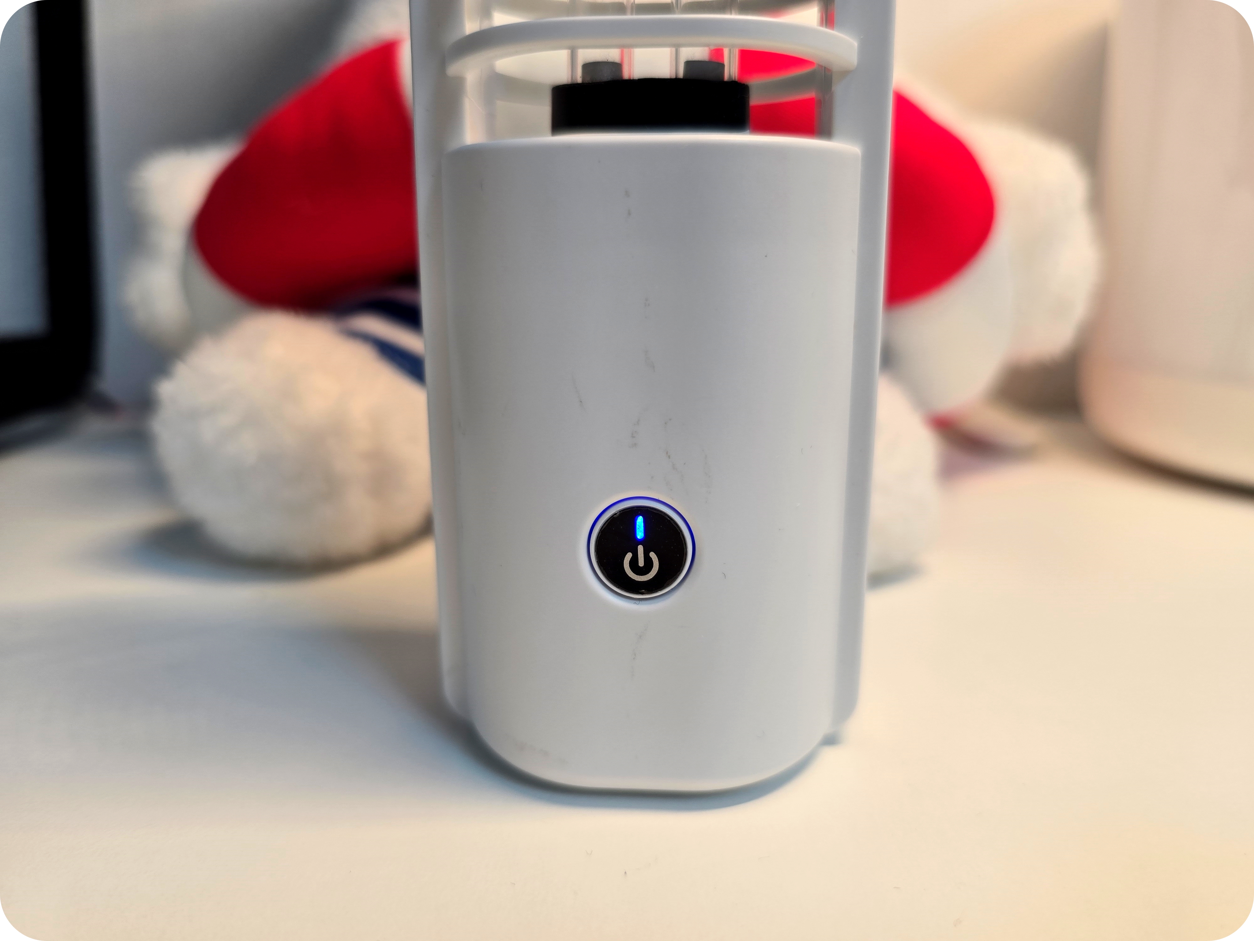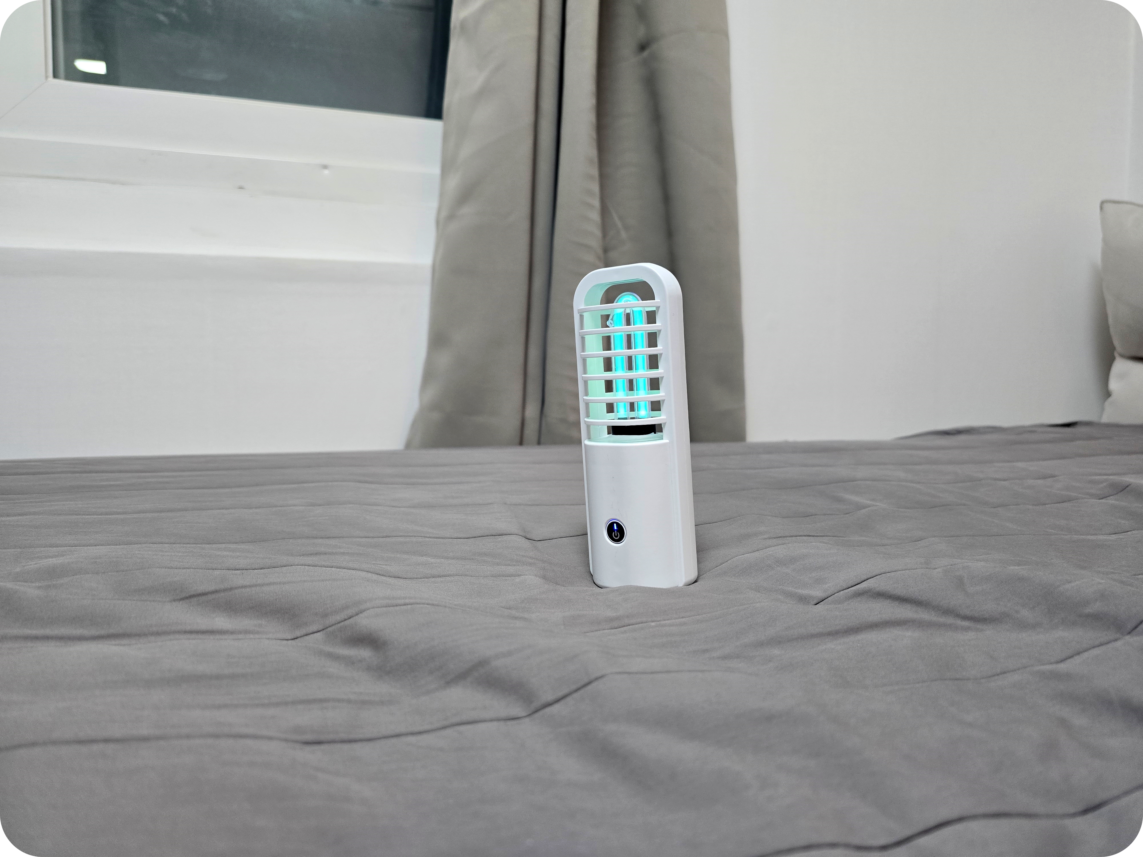 작동 방식은 2가지 방법이다. 전원 버튼을 짧게 한 번 누르면 파란색 LED가 점멸하는데 30초가 지나고 나서 30분간 작동이 된다. 30초간 작동이 되지 않는 이유는 UV를 직접 눈으로 보거나 피부에 쬐면 좋지 않기 때문에 전원을 켠 상태에서 도망을 가야 하는 시간이다.