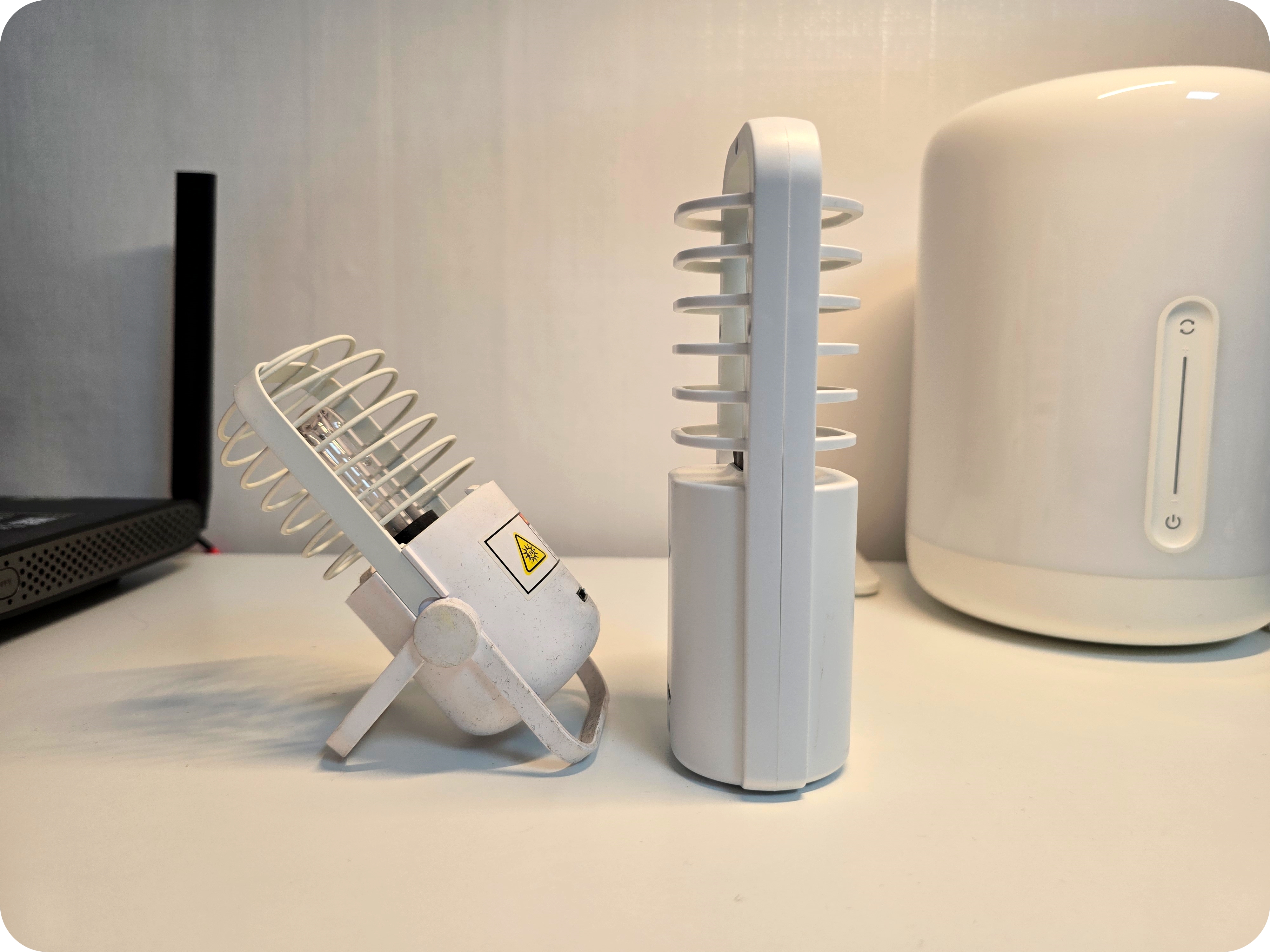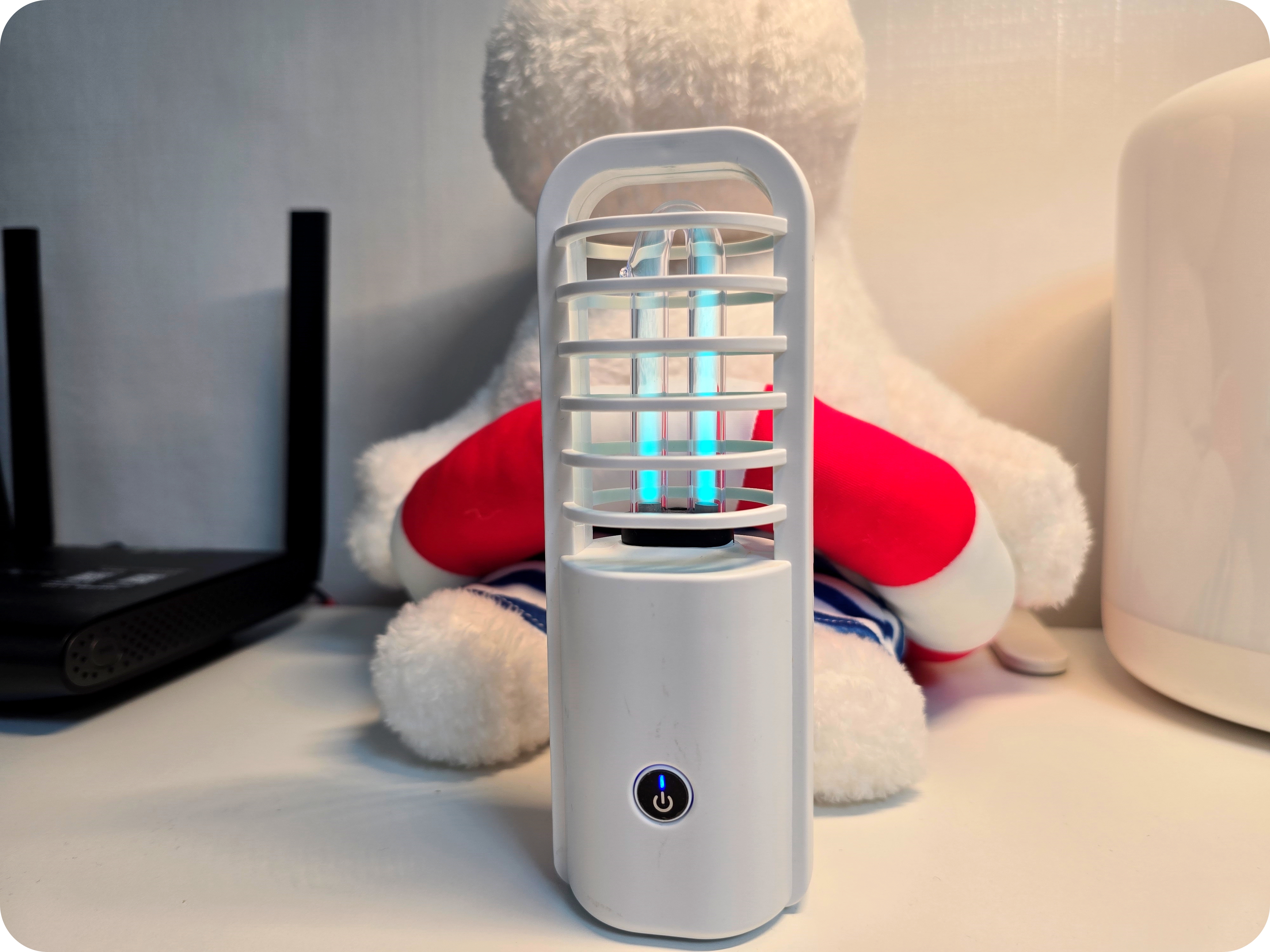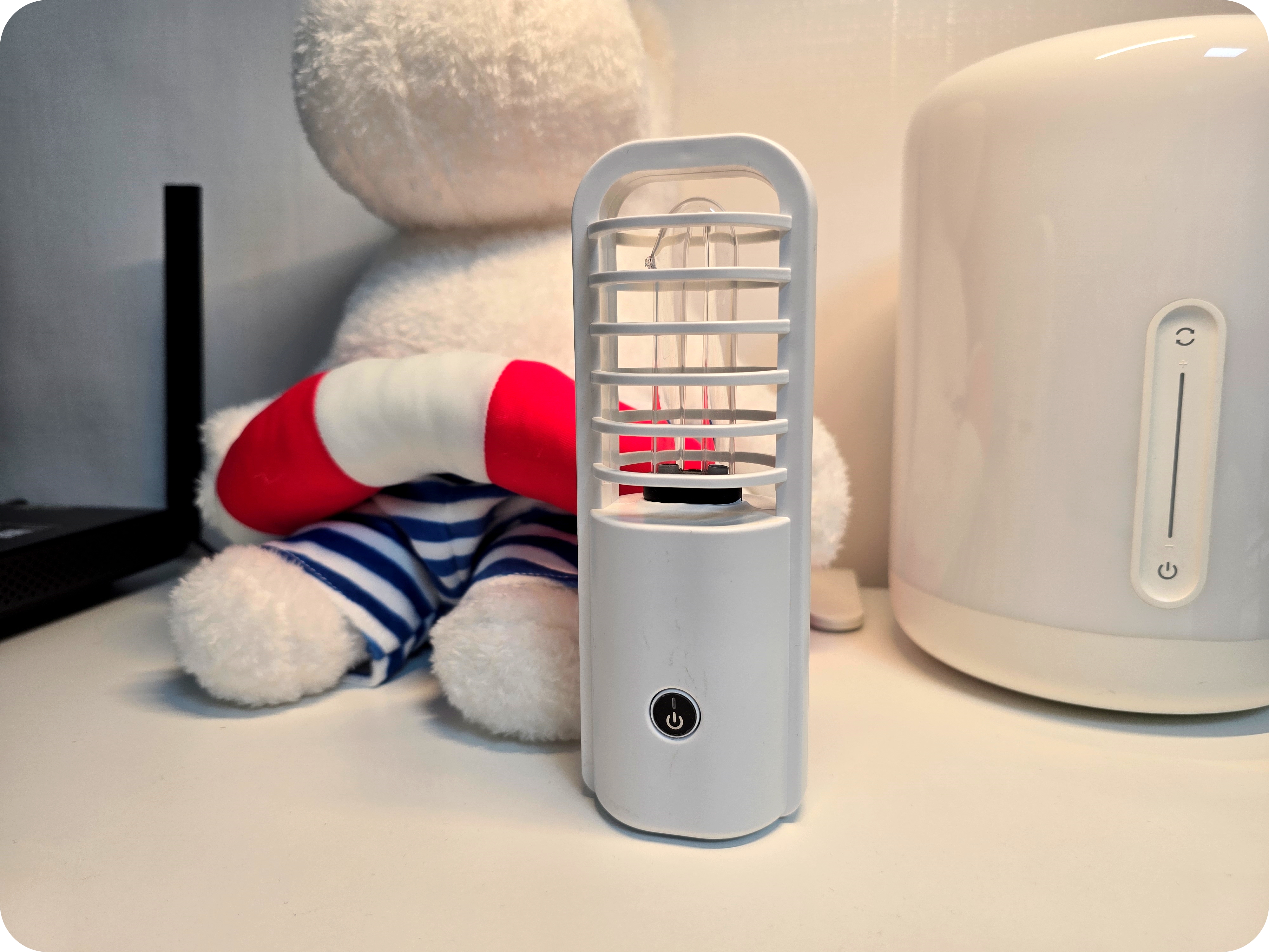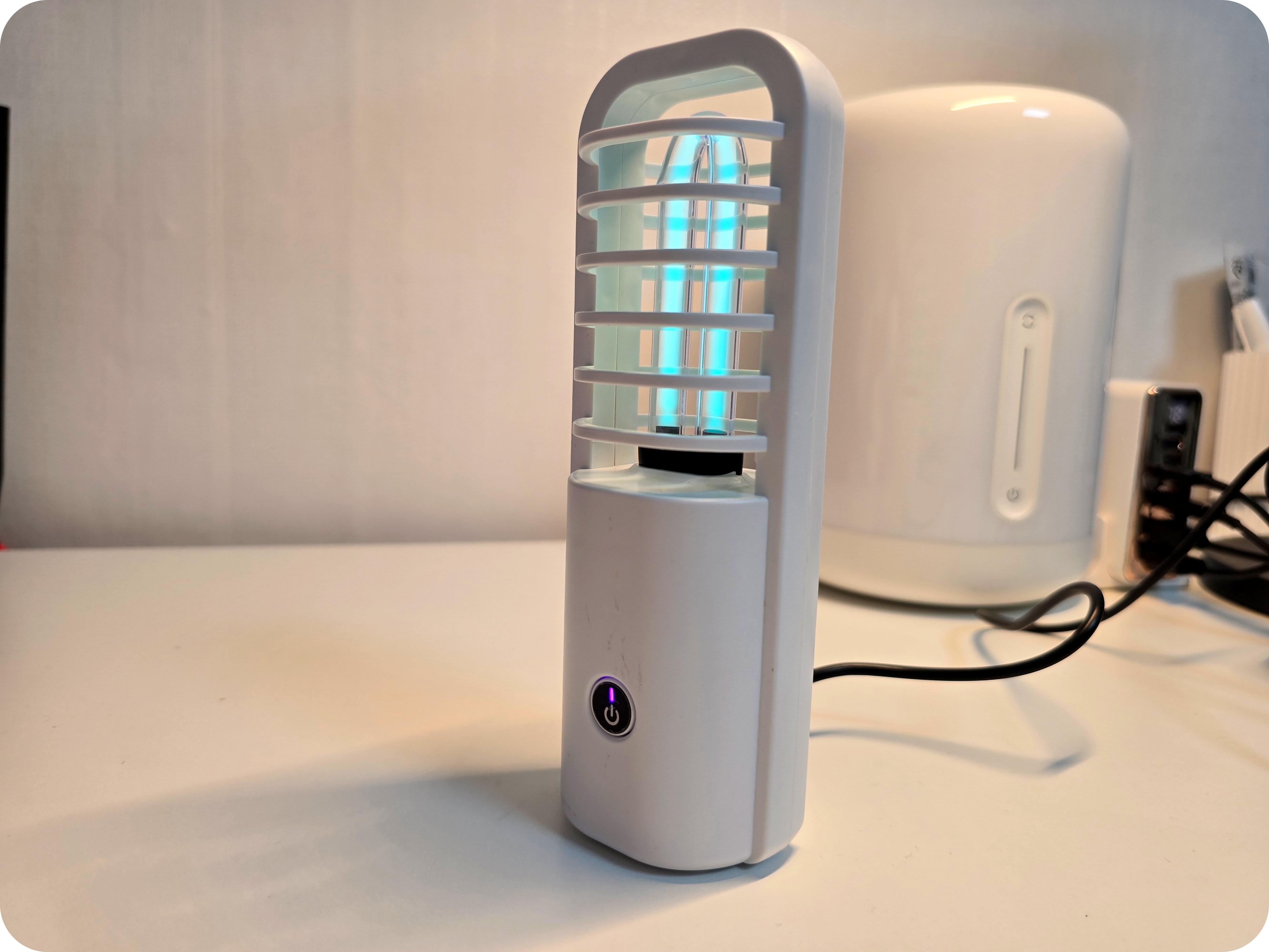 제품은 아주 단순하게 생겼다. 원통형 모양의 제품 안에 UV 램프가 들어가 있으며 아쉽게도 LED가 아닌 UV램프로 오존을 발생하는 제품이다. 오존은 냄새제거와 살균에 효과가 있는 것으로 보이니 어떻게 보면 일석이조라고 생각할 수 있지만 반대로 UV를 직접 보게 되면 몸에 좋지 않고 오존도 장시간 노출되면 호흡기에 좋지 않은 것으로 알고 있다.