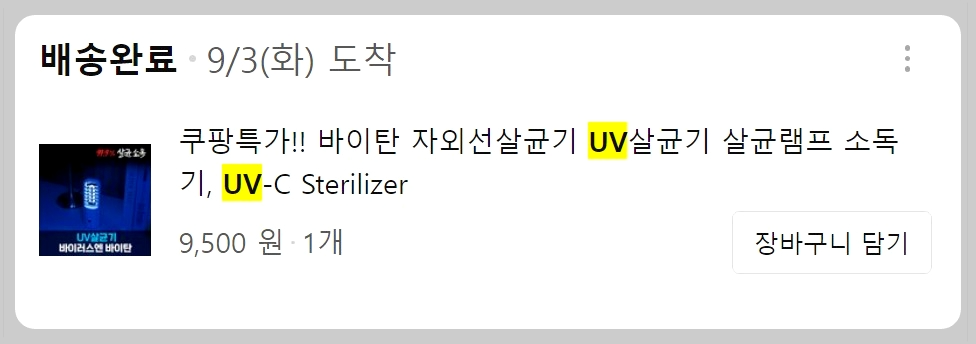 지난여름 새롭게 이사한 자취방에 곰팡이와 싸우기 위해 구매했던 바이탄 UV살균기. 기존에도 이와 비슷한 UV 살균기를 사용하고 있었으나 출근할 때 침실, 화장실 동시에 사용하기 위해 알아보던 중 쿠팡에서 저렴한 가격에 판매하는 UV 살균기를 구매해 보았다.