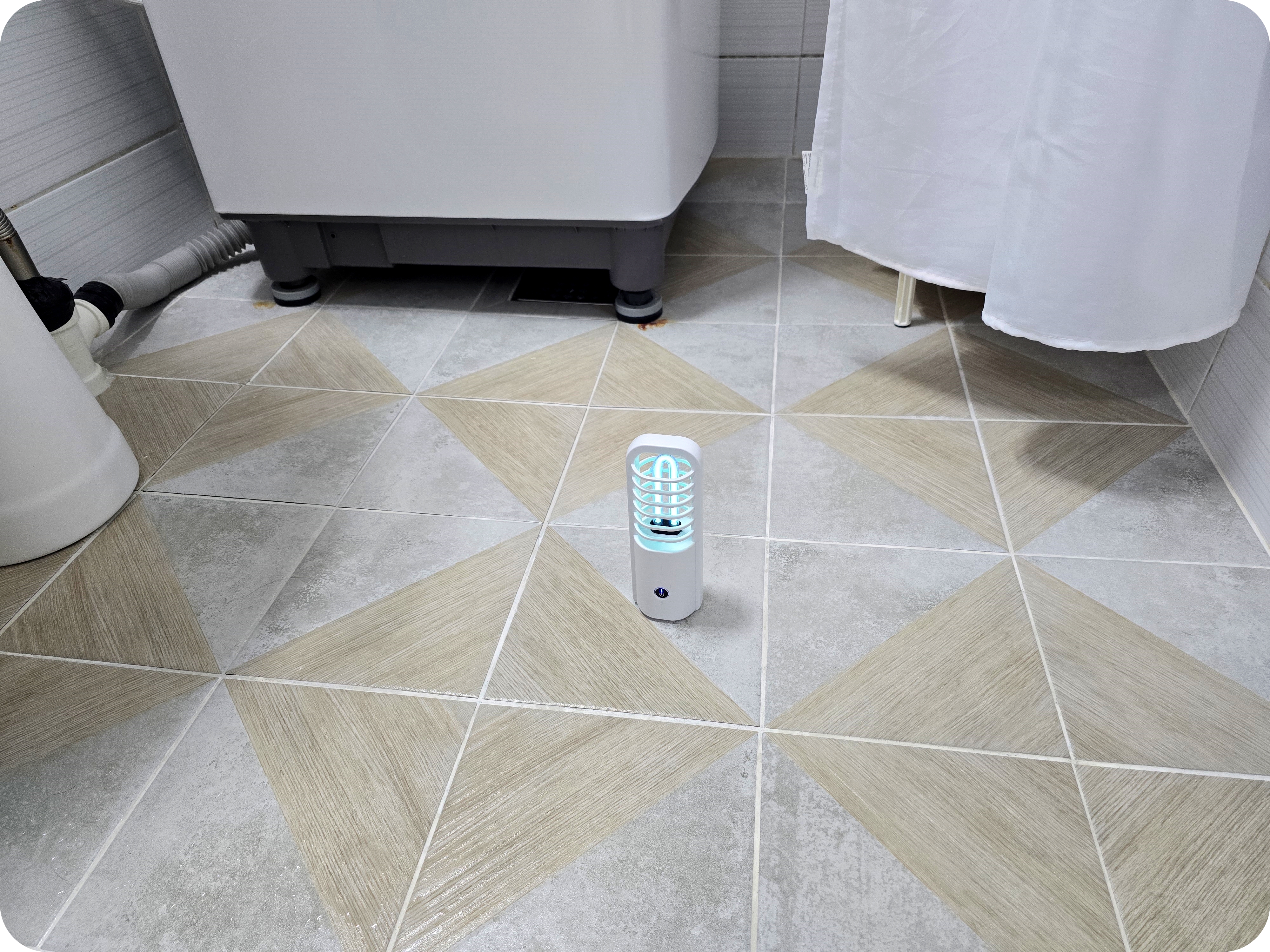 특히 기존에 사용하던 제품은 굴곡진 바닥에서 사용하기 좋았고 각도를 조절하여 특정 부위를 살균하기에 좋지만 바이탄 살균기는 평평한 바닥이 아니면 제품을 세워놓기 힘들어 이 부분이 아쉽기도 했다.