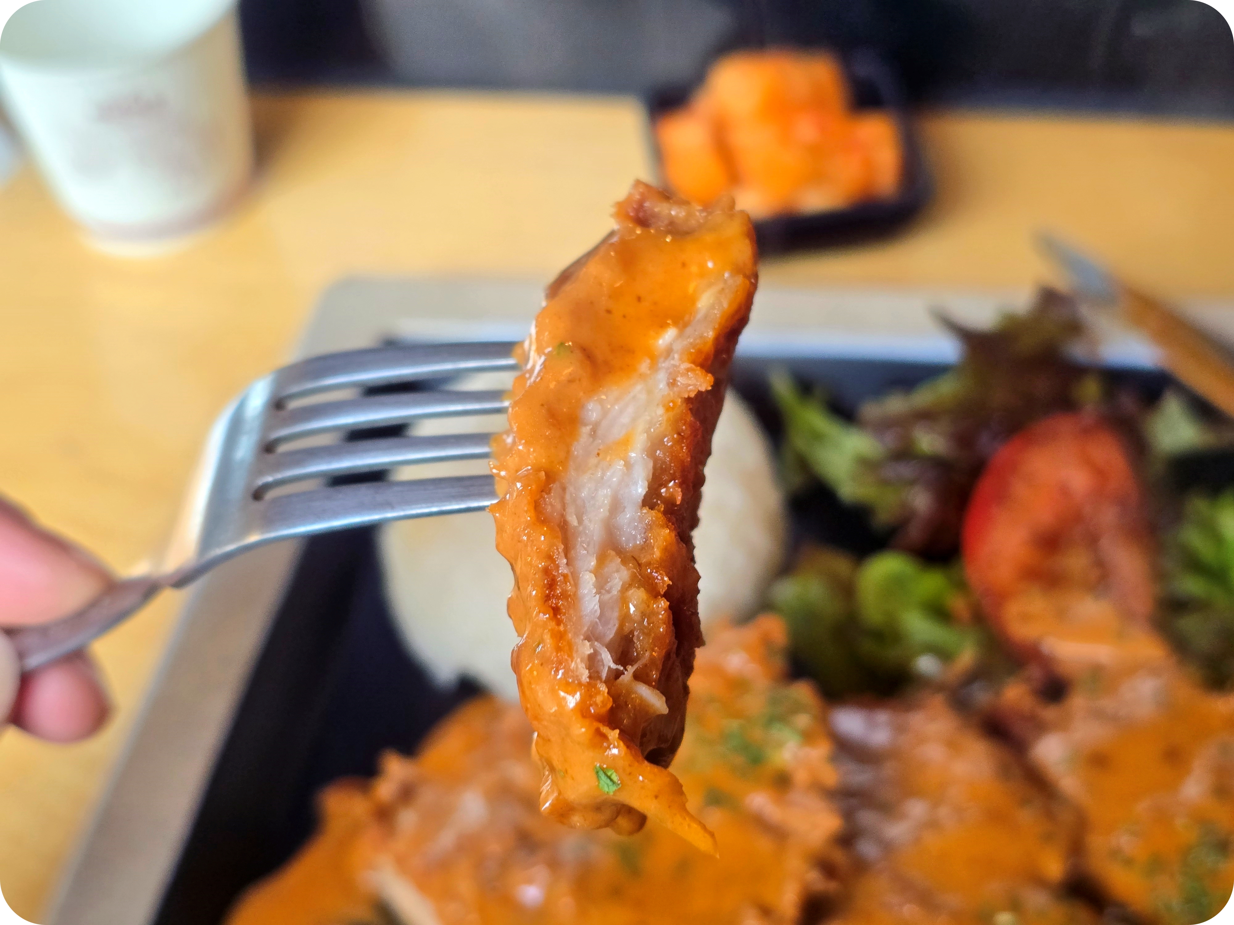이건 동료분이 주문한 이번에 새로나온 데미그라스 치킨까스. 돈까스 뿐 아니라 치킨까스 역시 아주 큼직하며 소스가 듬뿍 뿌려져 있다.