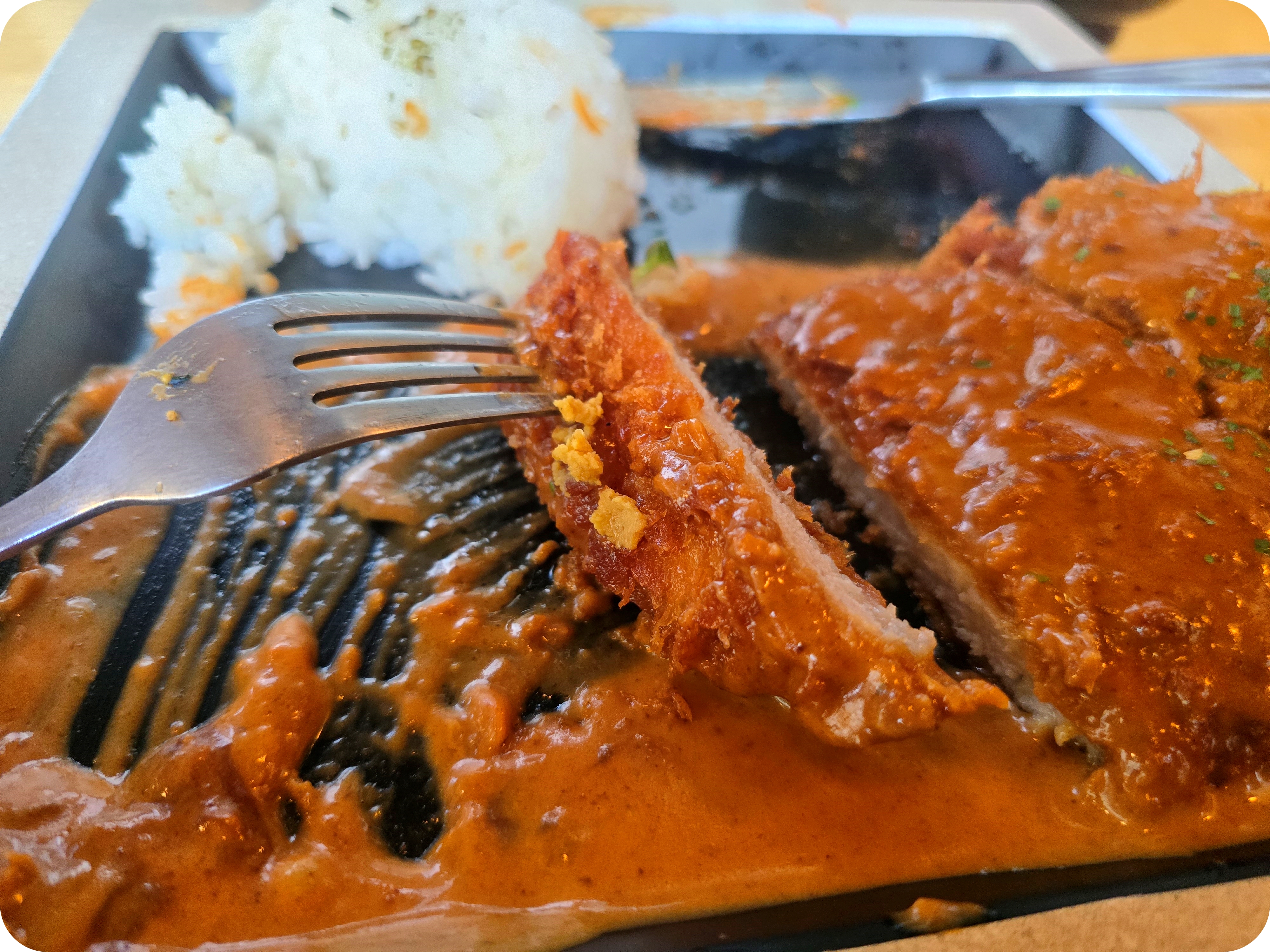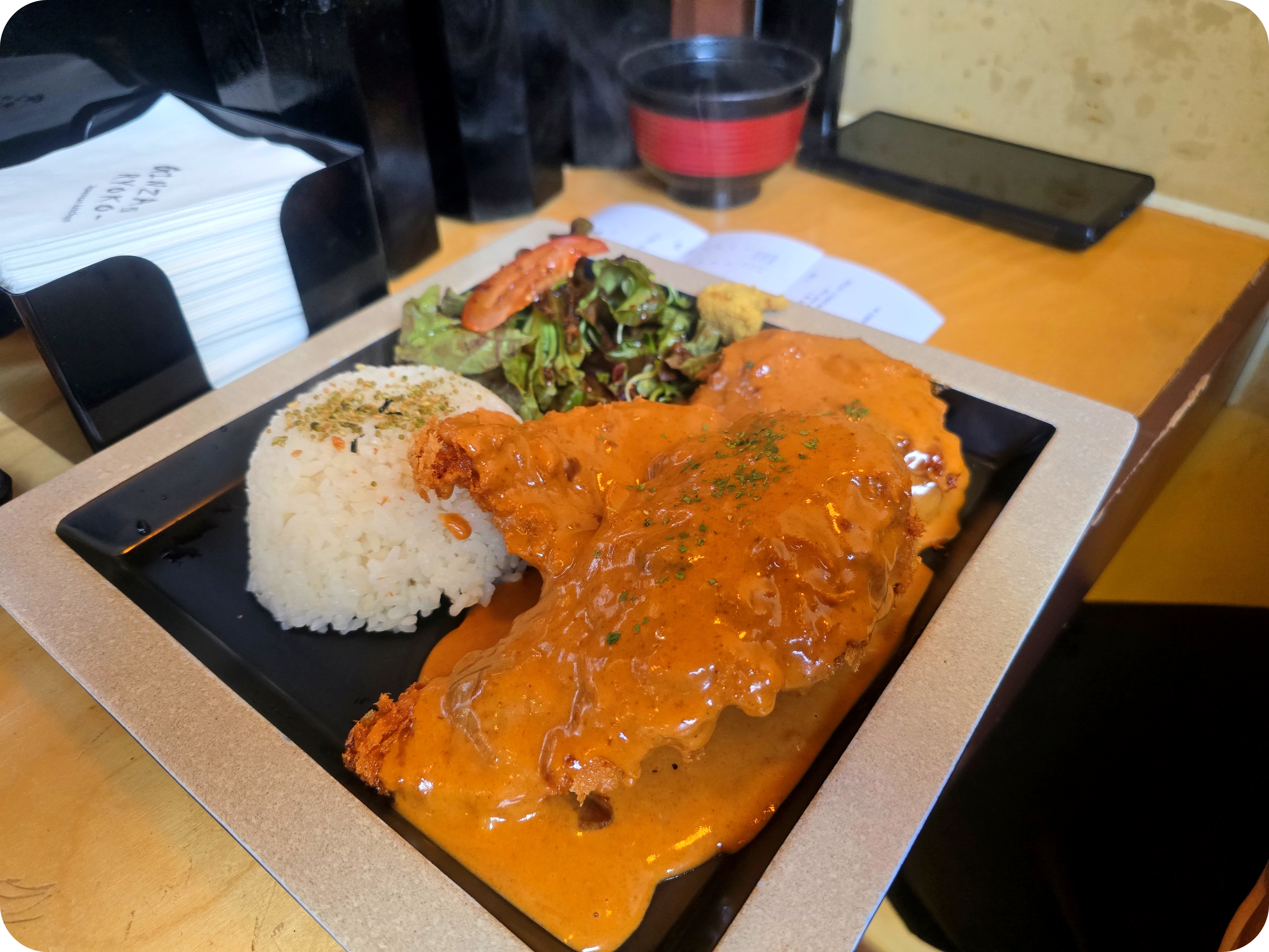 이건 내가 주문한 데미그라스 돈까스 (밥 1.5인분). 꾸덕한 생크림 데미그라스 소스가 돈까스를 완전히 덮어 부족하지 않은 소스양이었으며 튀김은 바삭하게 잘 튀겨져 내가 딱 좋아하는 긴자료코의 돈까스 모습이다.