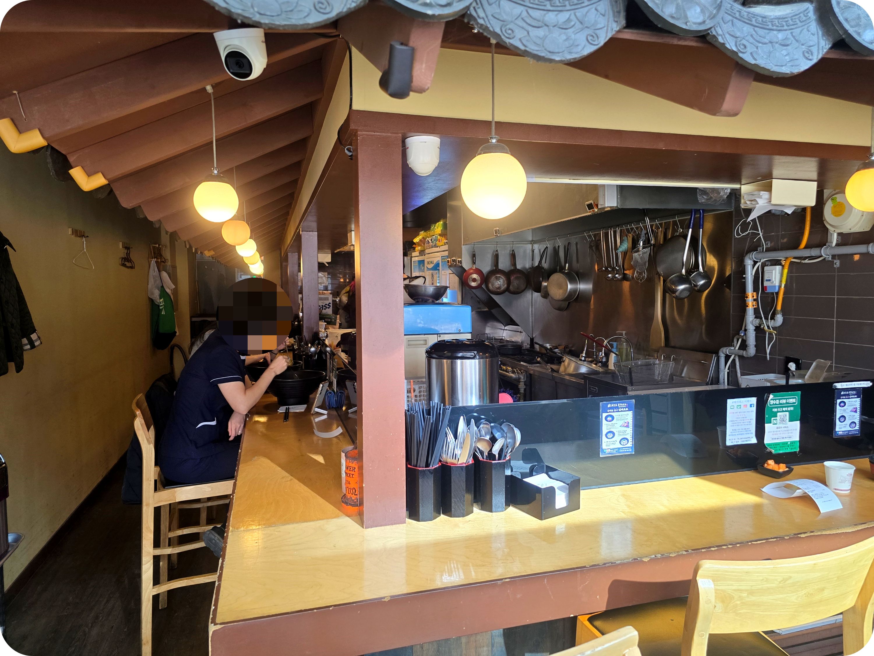 깍두기와 된장국, 물은 한켠에 구비되어있어 음식을 키오스크에서 주문한 뒤 밑반찬 준비를 직접 하다보면 어느새 음식이 나온다.
