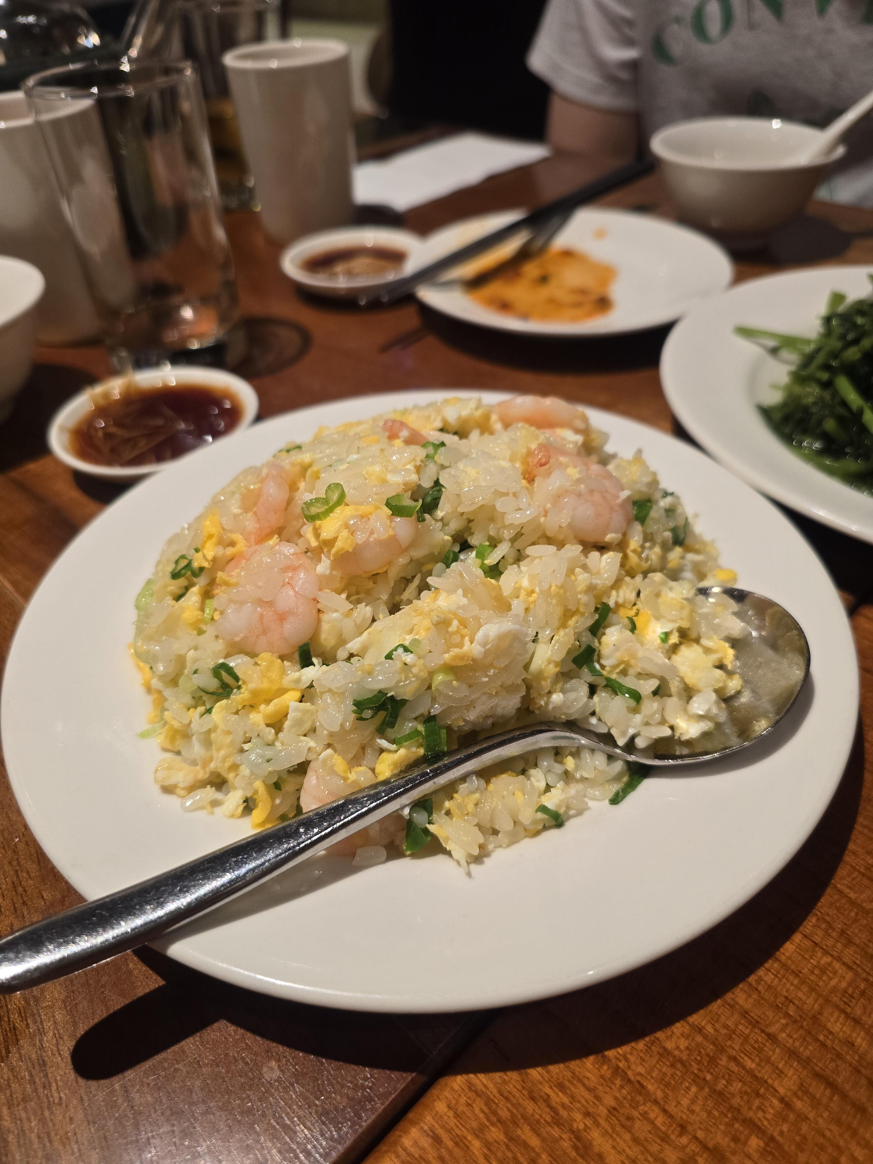 새우볶음밥. 기름기가 적은 평범한 볶음밥맛. 식사용으로 충분히 좋다.
