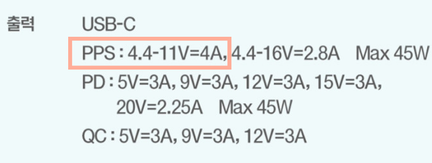 그렇기 때문에 위에 해당되는 삼성 갤럭시 제품을 이용하는 사람들은 PD3.0충전기가 아닌 PPS를 지원하는 충전기를 구매해야하는데 이 PPS 충전기들도 사양이 있다보니 이왕이면 45W를 충분히 지원해주는 충전기를 알아보도록 하자.