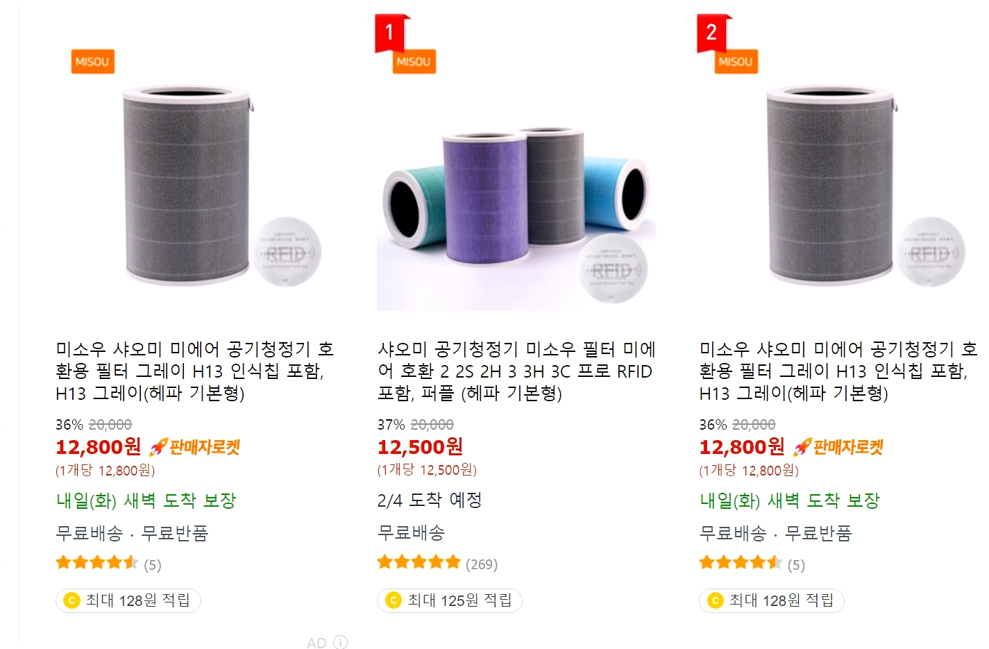 쿠팡에서 RFID 스티커가 있는 호환필터를 찾던 중 미소우라는 브랜드에서 1만원대에 판매를 하길래 구매를 해보았다. 참고로 미소우 필터는 네이버에서 검색하여도 나오는데 네이버에서는 2만원 정도에 판매 중인 필터이다.