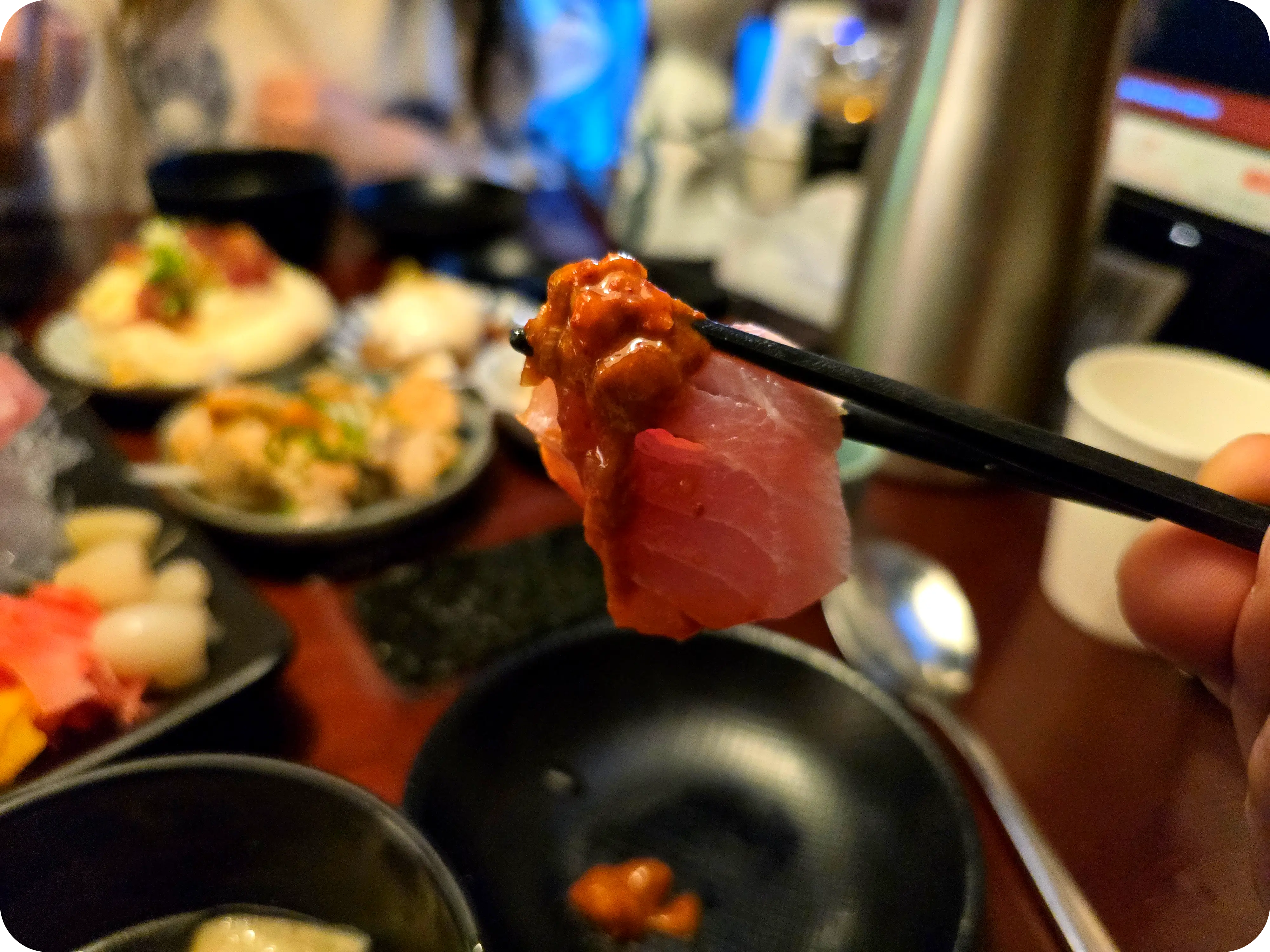 또 종지그릇에 들어있는 소스는 해삼내장 소스. 비릴줄 알았으나 비리지는 않으며 오묘한 해삼맛이 느껴지는 게 참치회를 더 색다르게 즐길 수 있었다.
