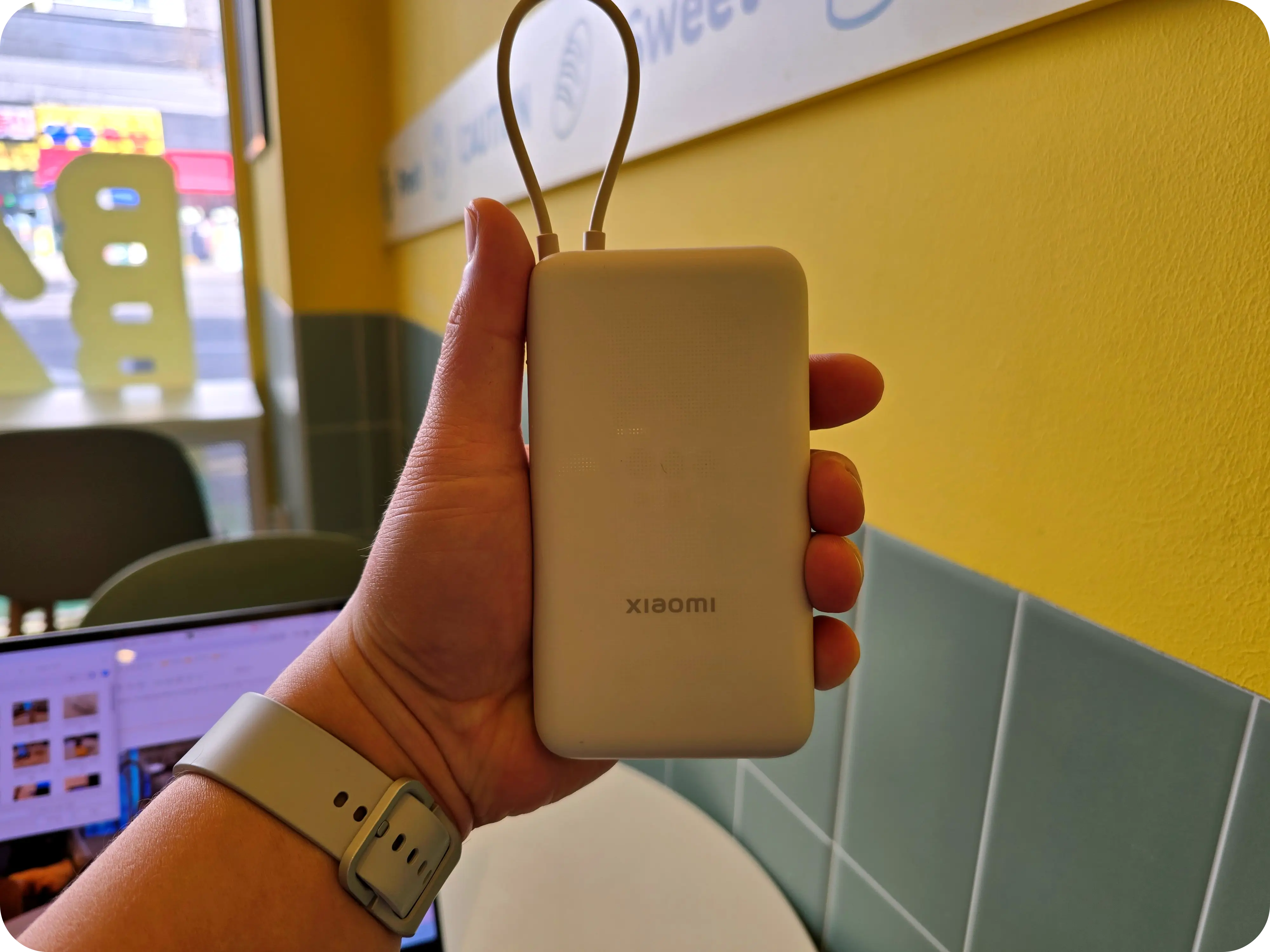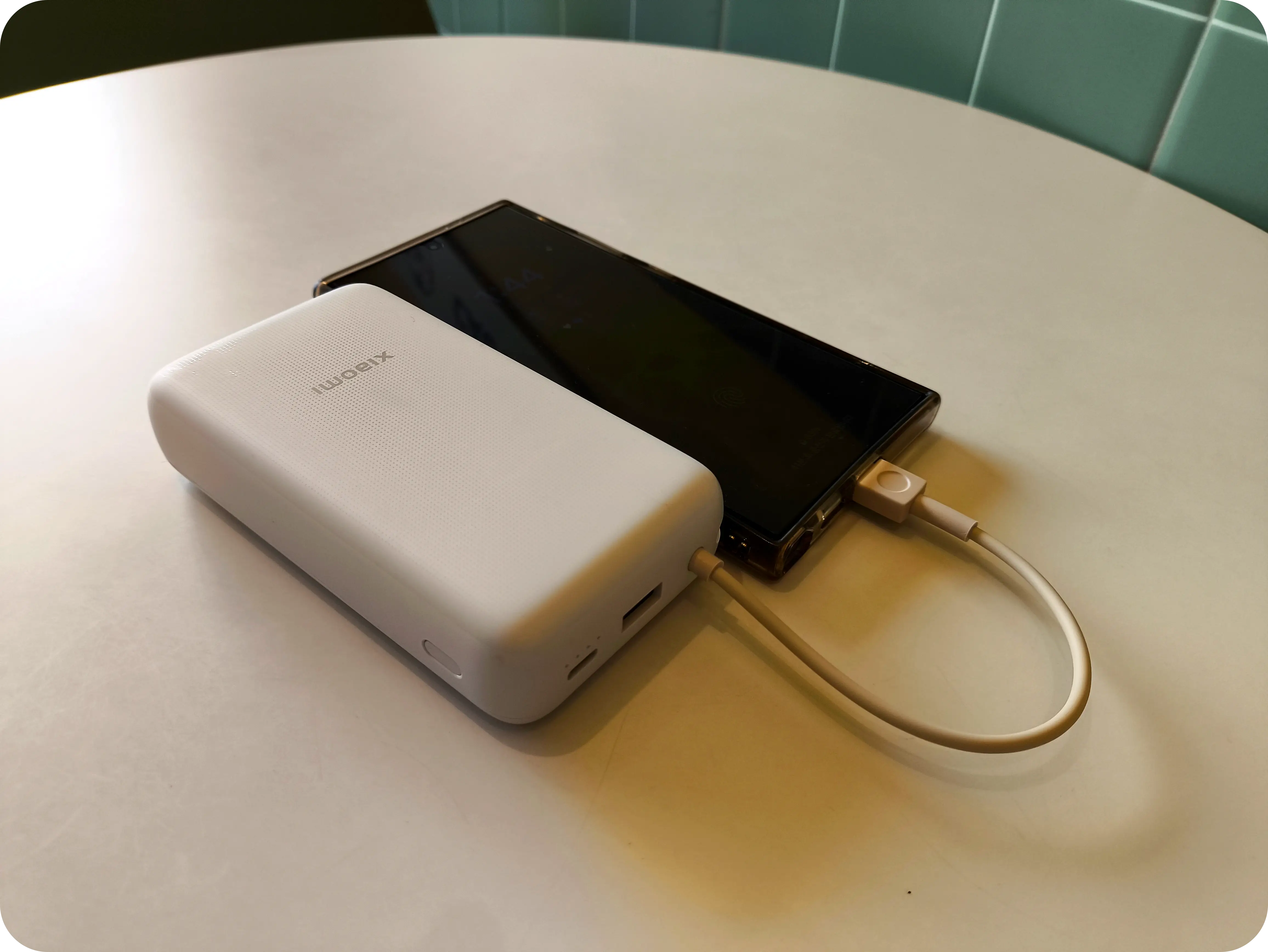 33W 샤오미 보조배터리 8세대는 127 x 70.5mm의 크기로 갤럭시 S24 울트라보다 작은 사이즈로 휴대하기 편한 사이즈이다. 물론 케이블의 크기까지 포함하면 더 길어지지만 휴대하기에는 문제가 없다. 남성 손에는 착 감기는 크기이지만 여성의 작은 손으로는 크게 느껴질 수 있다.