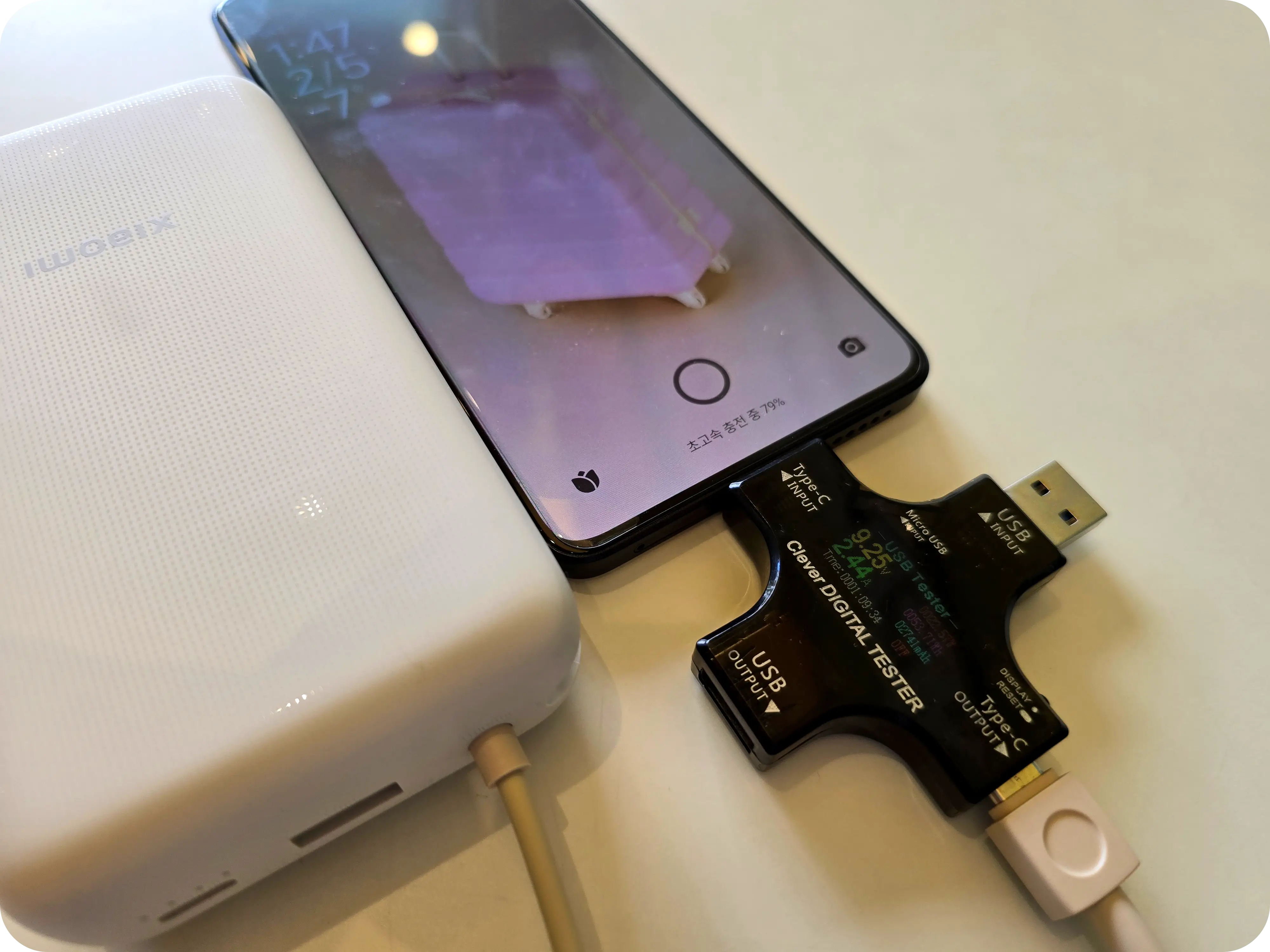 최대 45W의 충전을 지원하는 갤럭시 S24 울트라의 경우 20W 정도로 초고속 충전이 되는 것을 확인했다. 33W의 경우 11V3A에 해당하는 프로토콜을 지원하는 샤오미 스마트폰에서만 가능한 것으로 보인다.