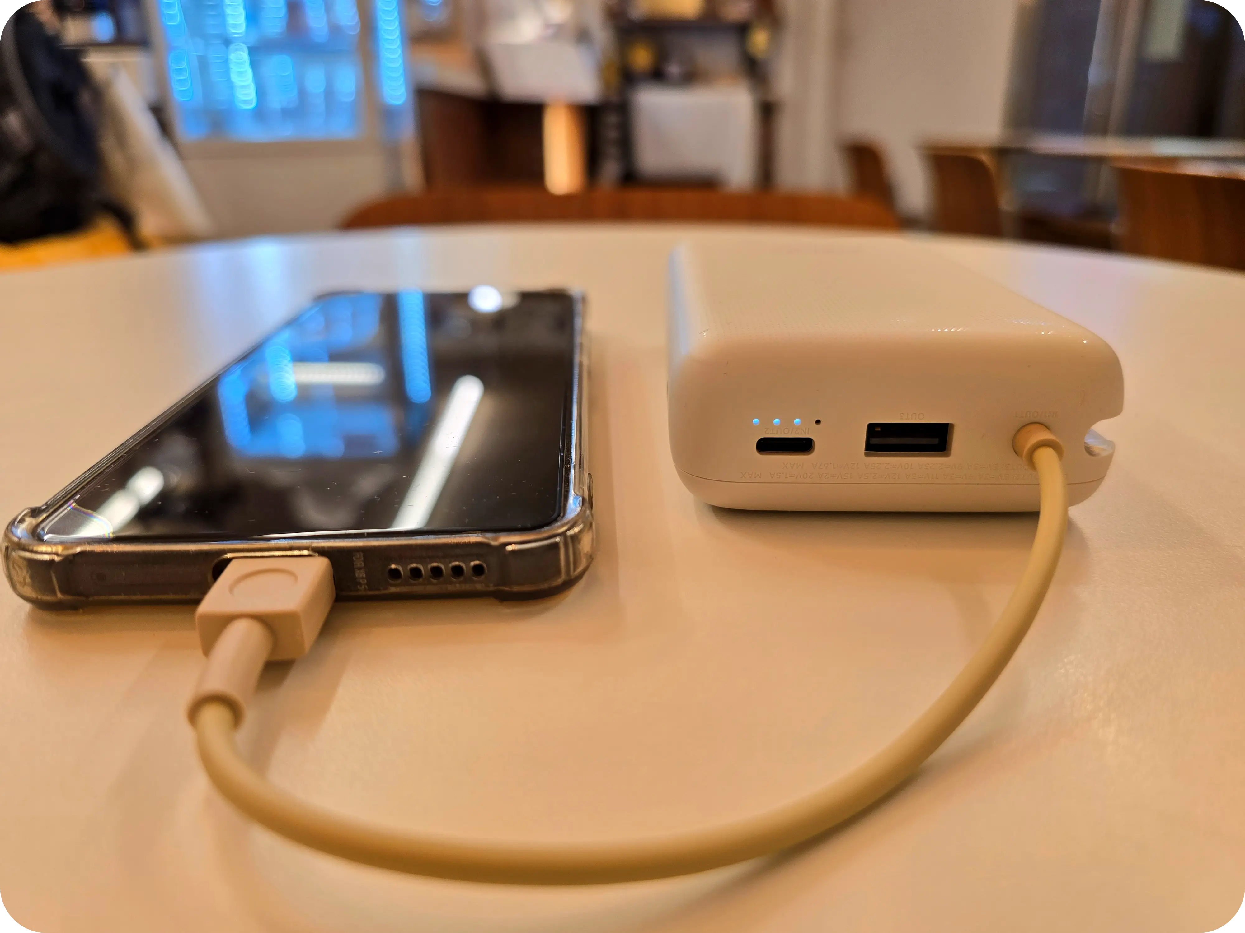 보조배터리에 있어서 패스스루란 보조배터리를 충전하면서 스마트폰을 동시에 충전할 수 있는 기능이다. 패스스루를 이용중에는 보조배터리의 경우 15~18W 정도로 충전이 되었으며 갤럭시 S24 울트라의 경우 15W급 고속충전이 되었다. 동시충전(다중충전)은 다소 아쉬웠지만 패스스루 기능은 나름 쓸만한 속도를 보여준다.