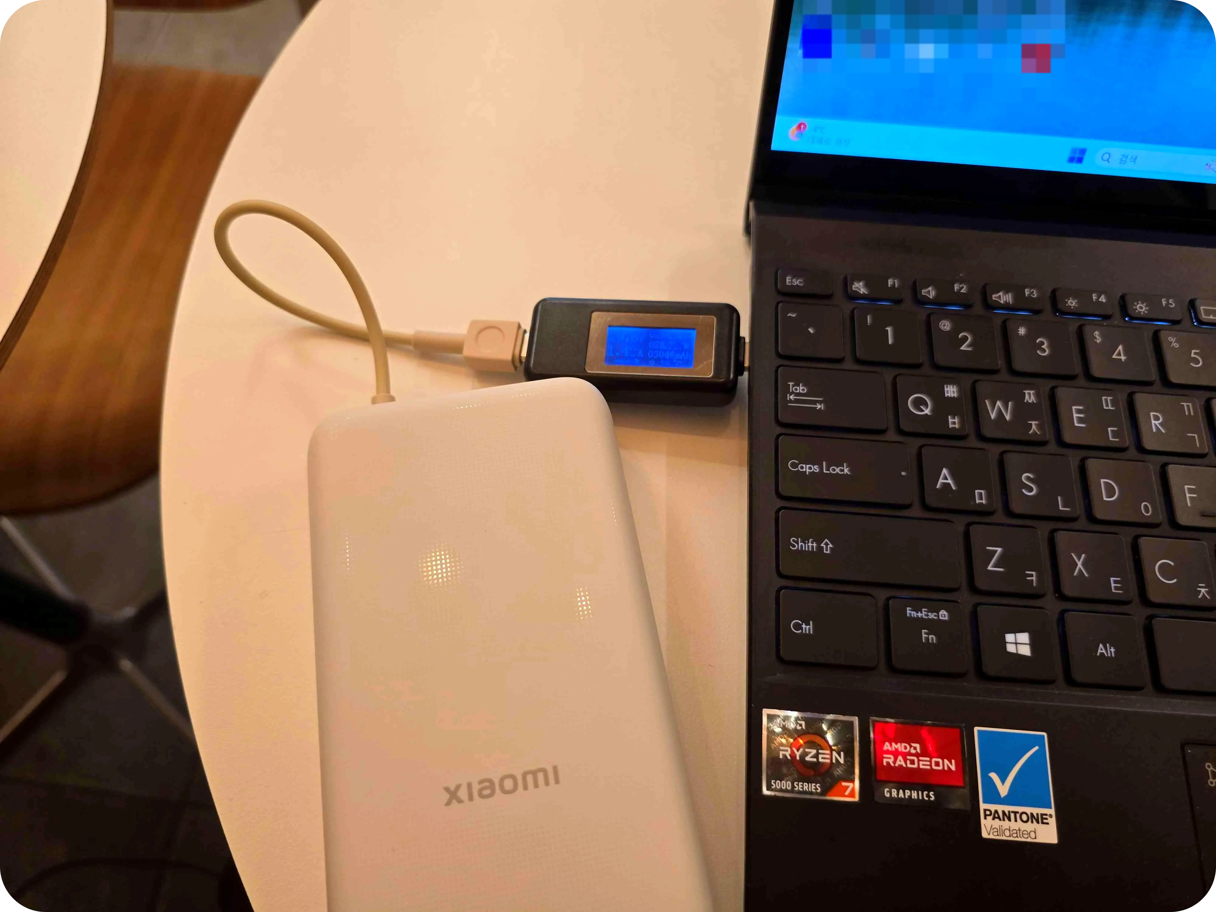 PD충전의 지원으로 노트북에도 사용을 해보았다. 젠북에 충전을 하니 28W로 충전을 해주었으며 30W 정도의 충전을 지원해 원활한 충전까지는 아니여도 급하게 사용하기에는 나쁘지 않았다.