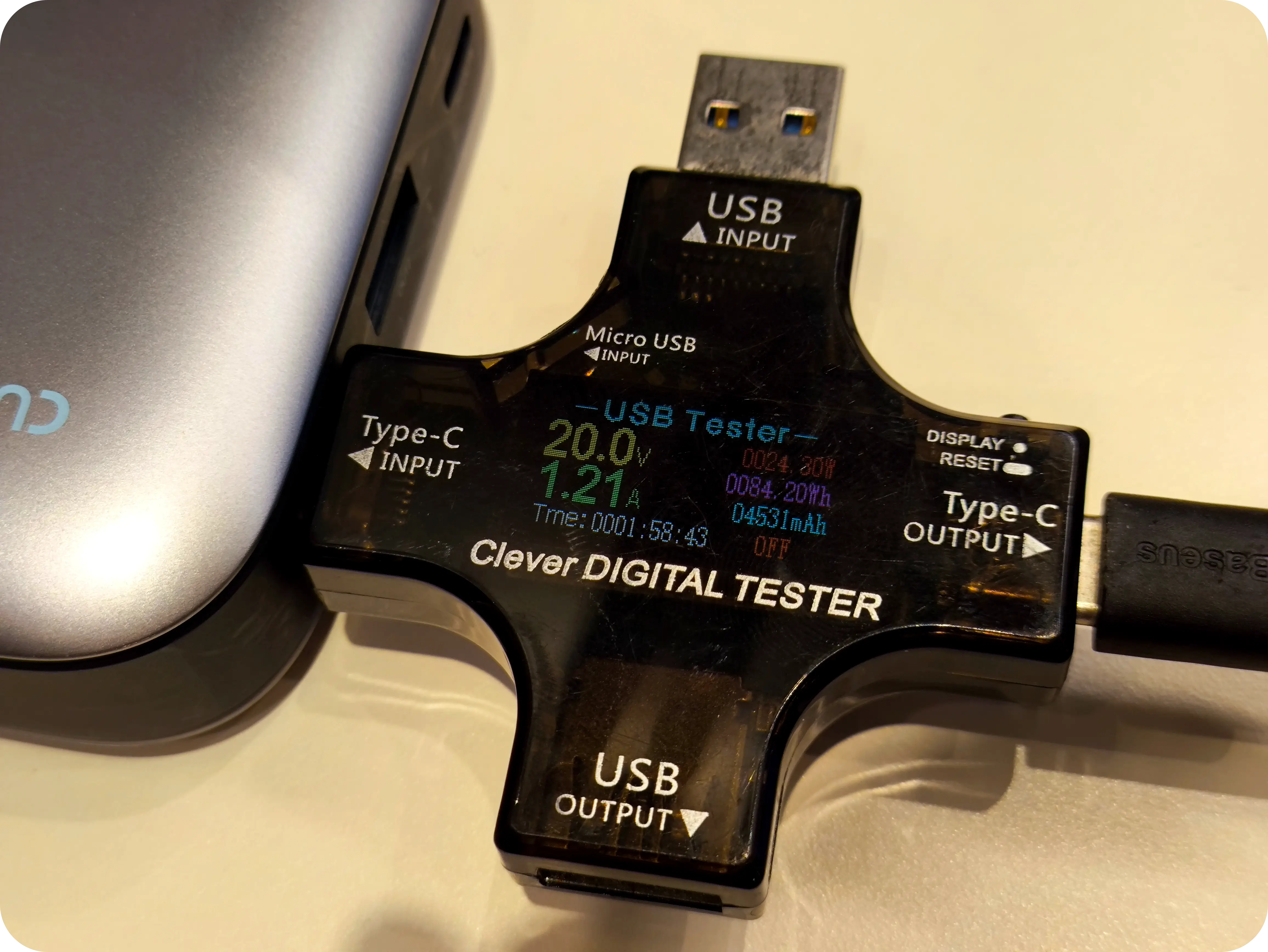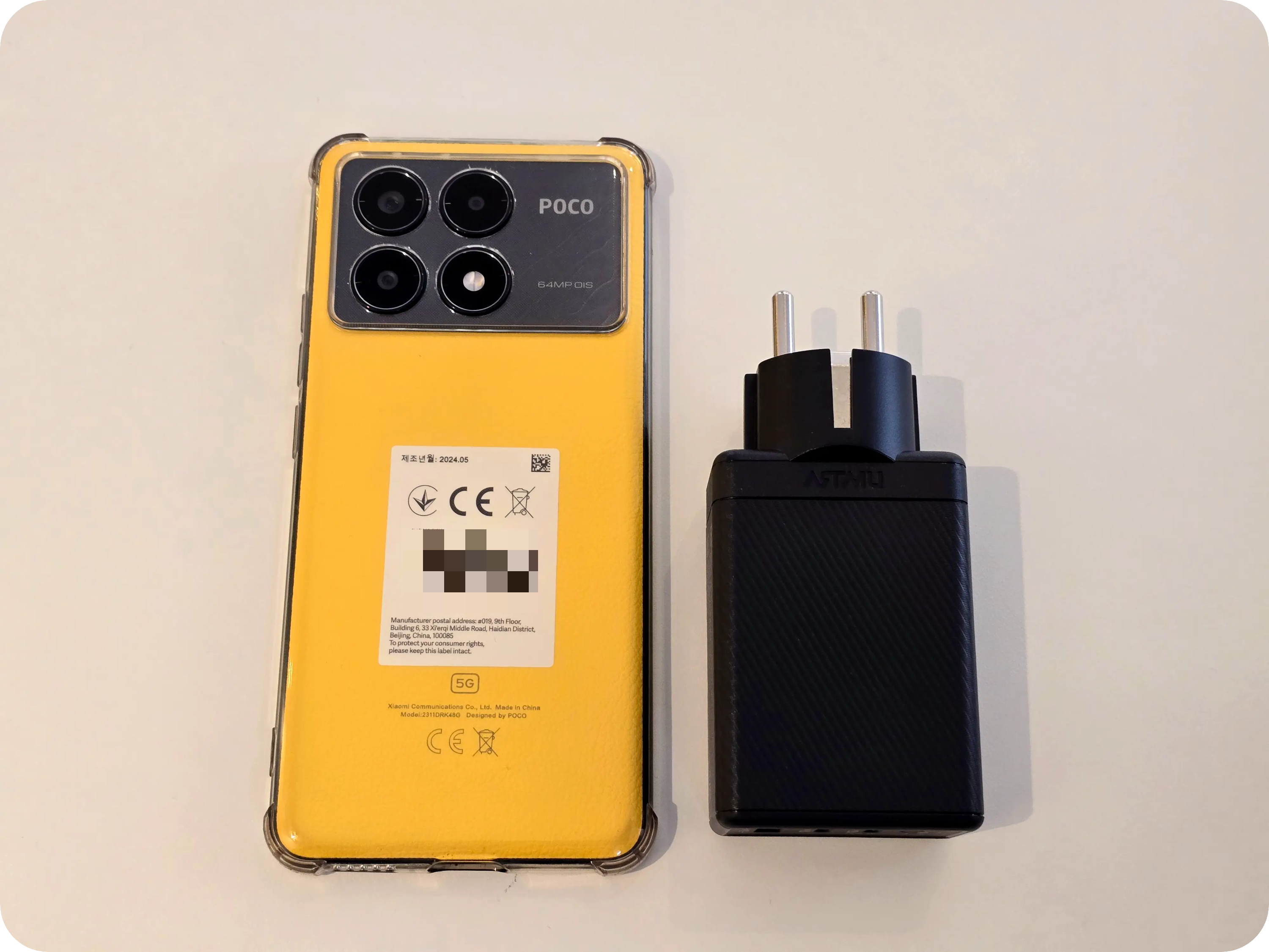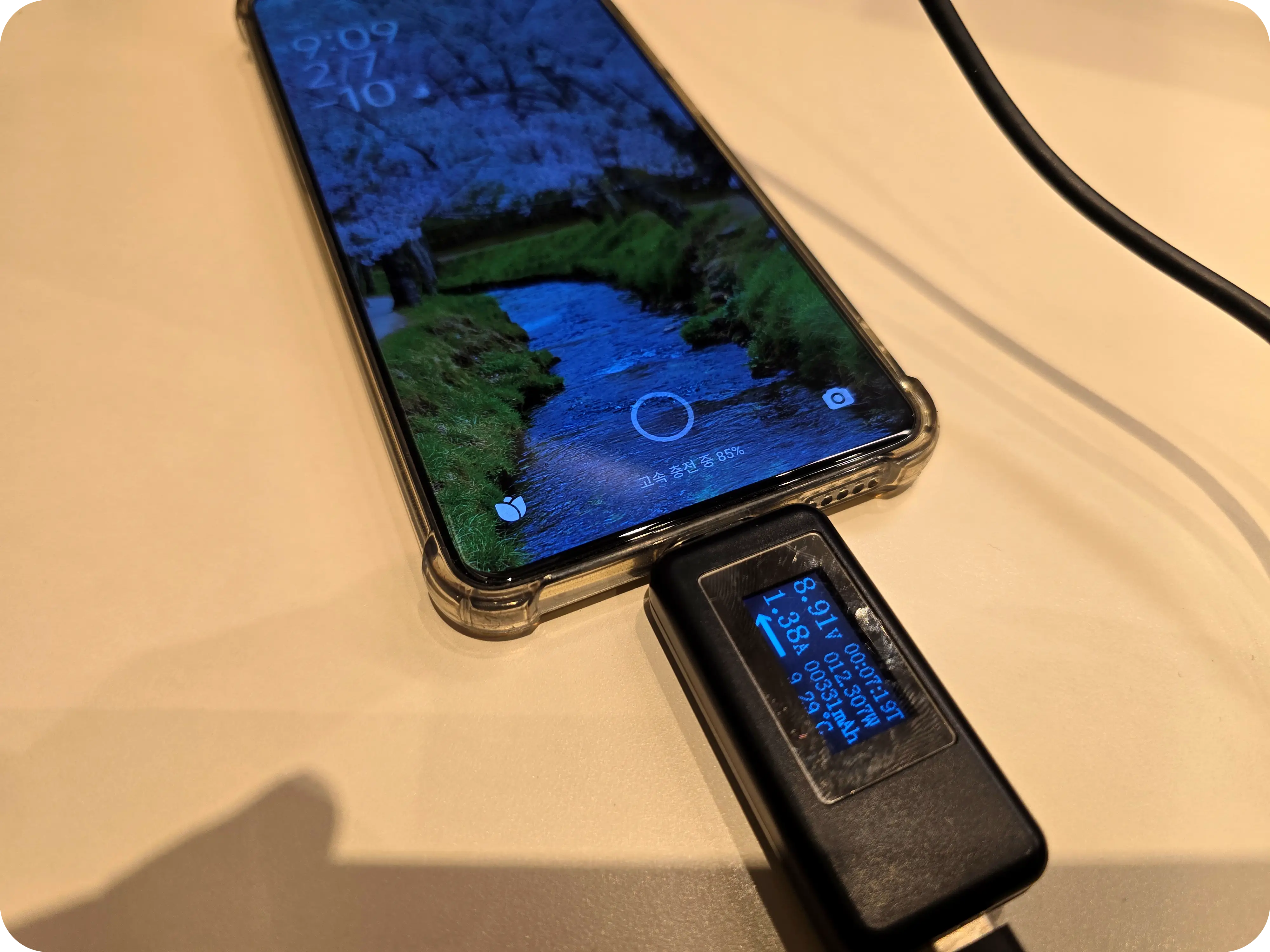 그러나 샤오미 포코X6 PRO의 경우 일반 고속충전으로 충전이 되는 것을 확인했다. 포코 X6 PRO는 최대 67W의 충전을 지원하며 전용 충전기가 아닌 경우에도 초고속 충전을 지원하는 제품이다. 하지만 아트뮤 GS610의 경우 1,2 포트 모두 확인해 보았으나 고속충전만 지원했다. 물론 고속충전 시에도 20W 정도로 충전이 되었다.