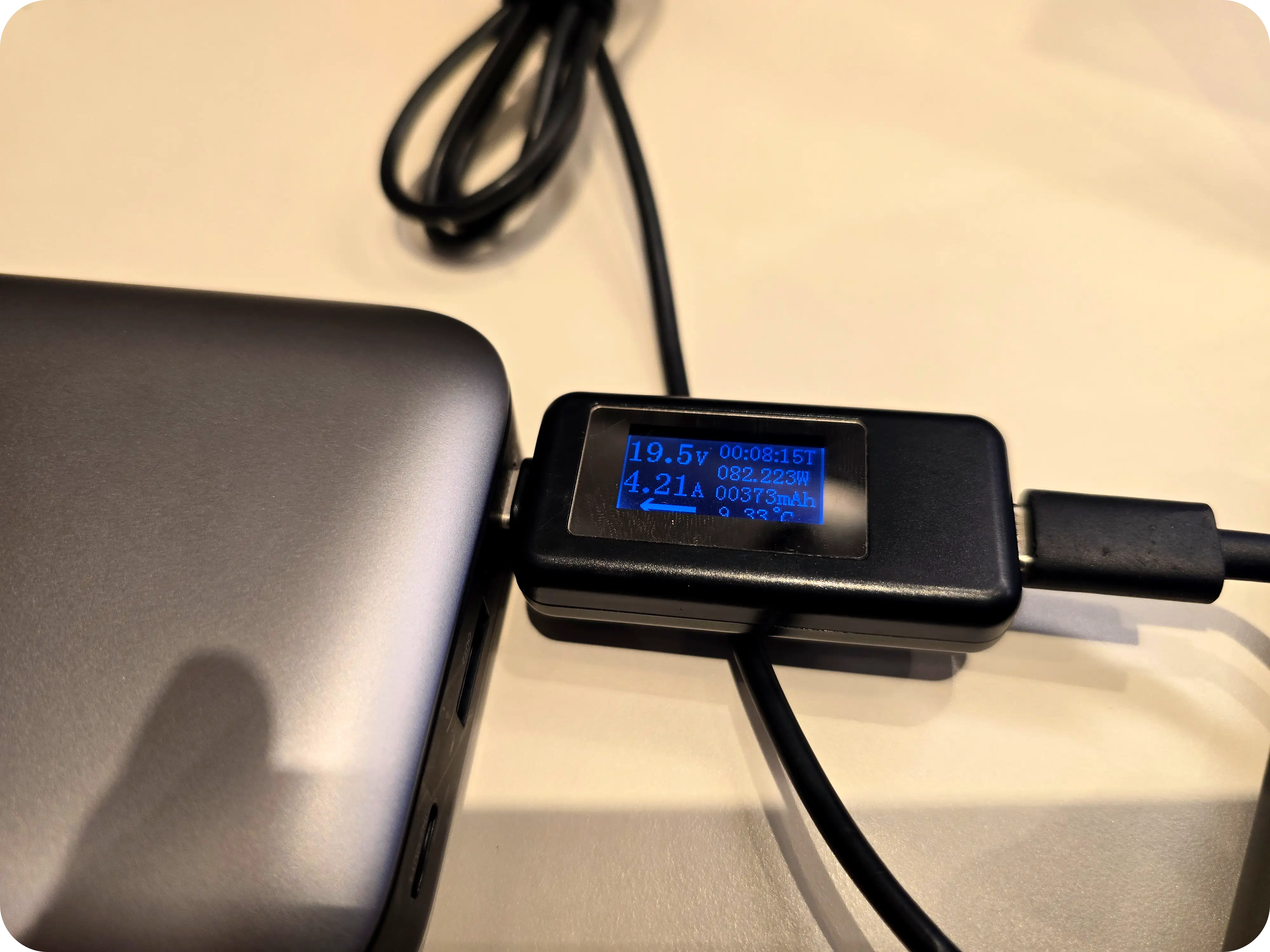 100W 충전을 지원하는 보조배터리를 연결하니 80W 이상의 충전을 지원하는 것을 확인했다. 이 조그마한 충전기 하나가 너무나 든든한 느낌이다.