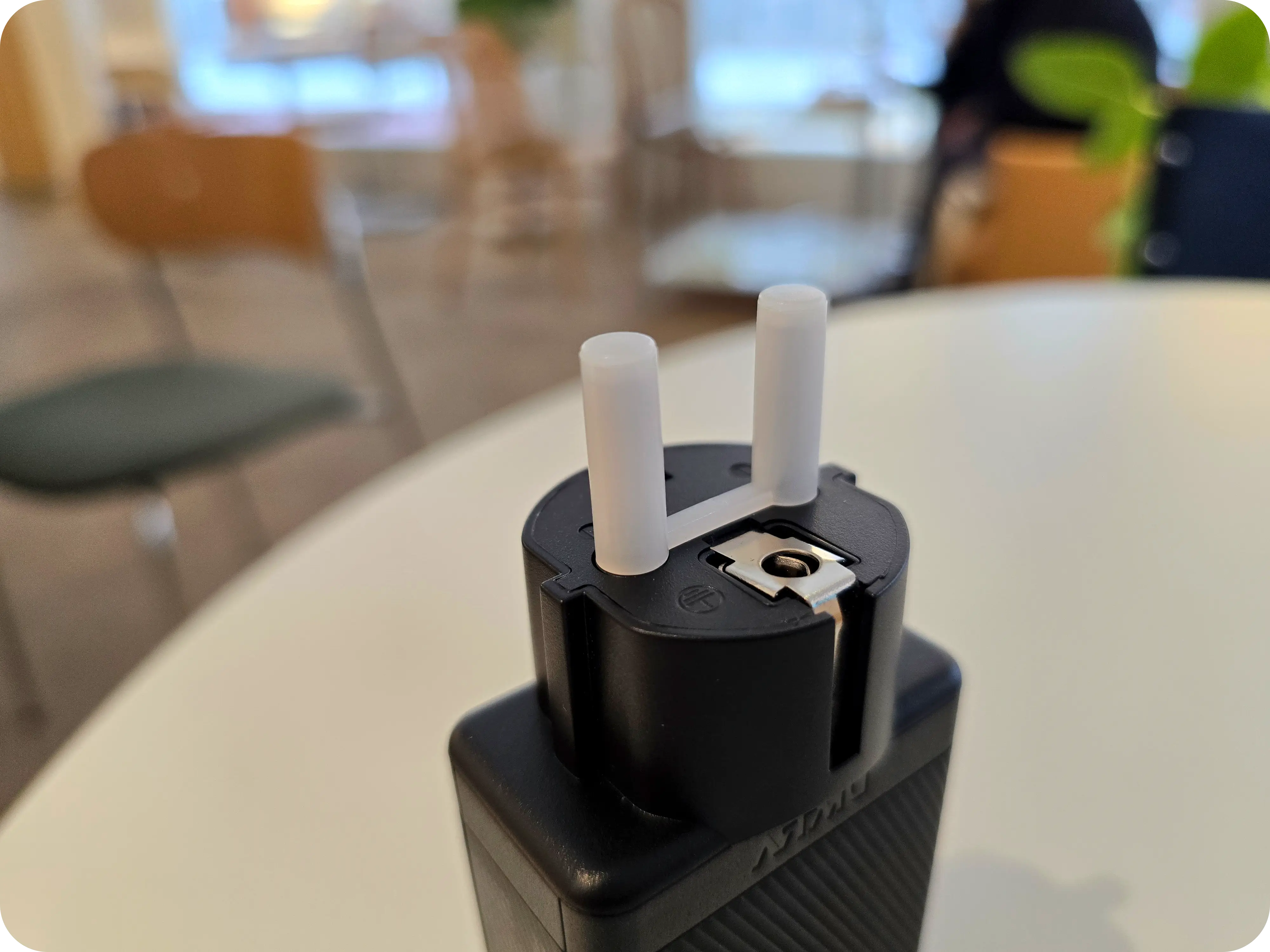 100W 지원하는 보조배터리를 1시간 가량 충전을 했음에도 충전기의 온도는 따뜻한 수준. 아직 겨울이라 그런 것일지 모르지만 겨울임에도 실내에서 손으로 잡을 경우 100W로 충전을 함에도 따뜻한 정도의 수준이면 상당히 발열 관리가 잘 되는 제품이다.