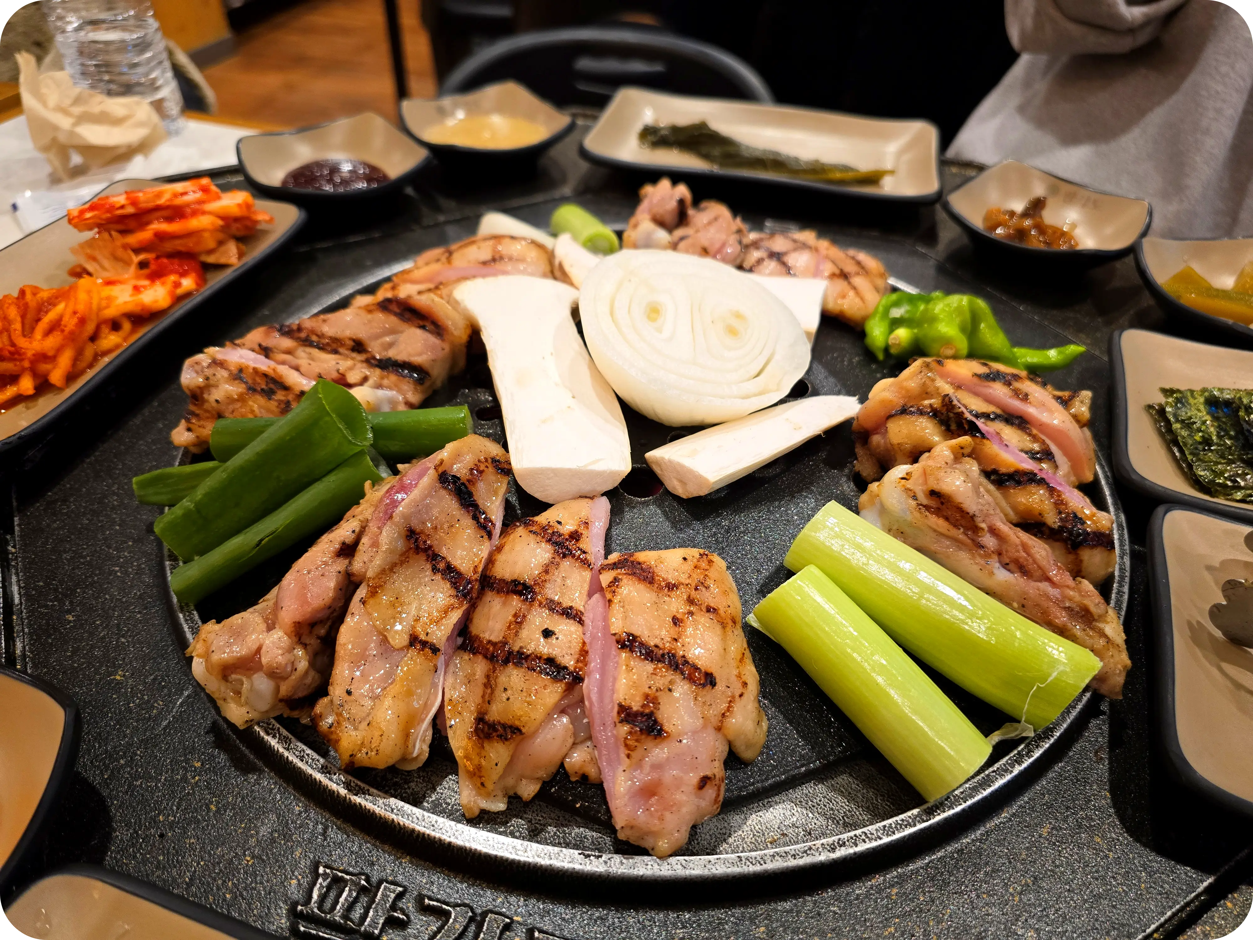 우리가 처음 주문한 것은 숯불닭갈비 2인분과 신선모둠야채. 처음와서 야채를 따로 주문해야 하는 줄 알았는데 추가주문하길 잘했다. 채소를 구워 먹기만 해도 너무 맛있었다.