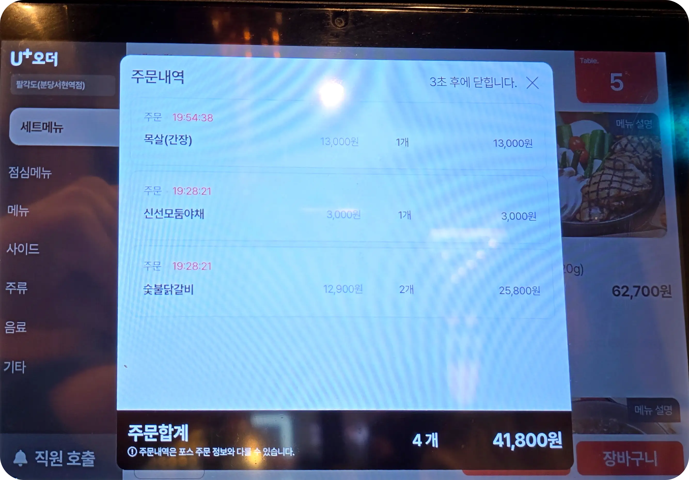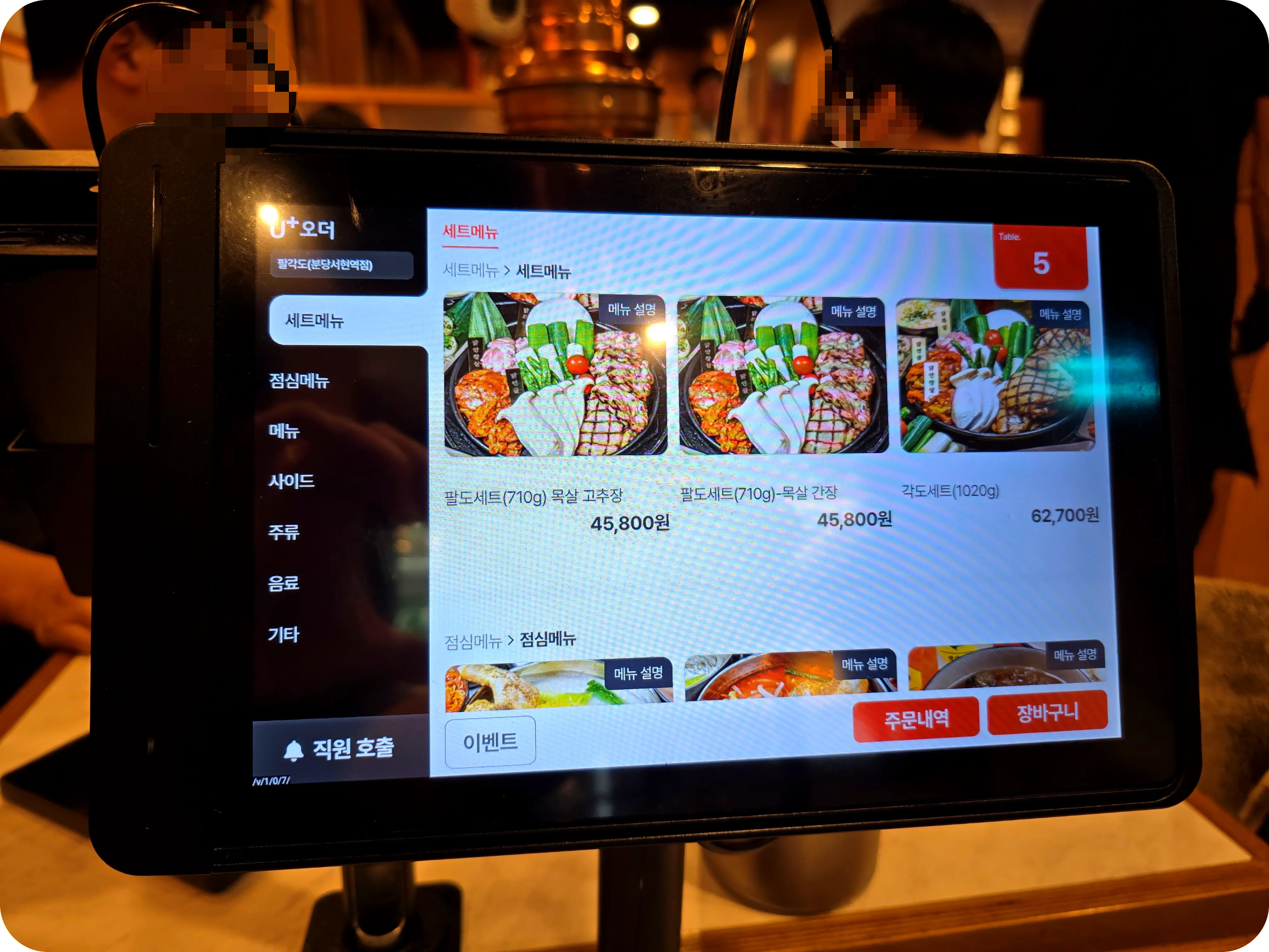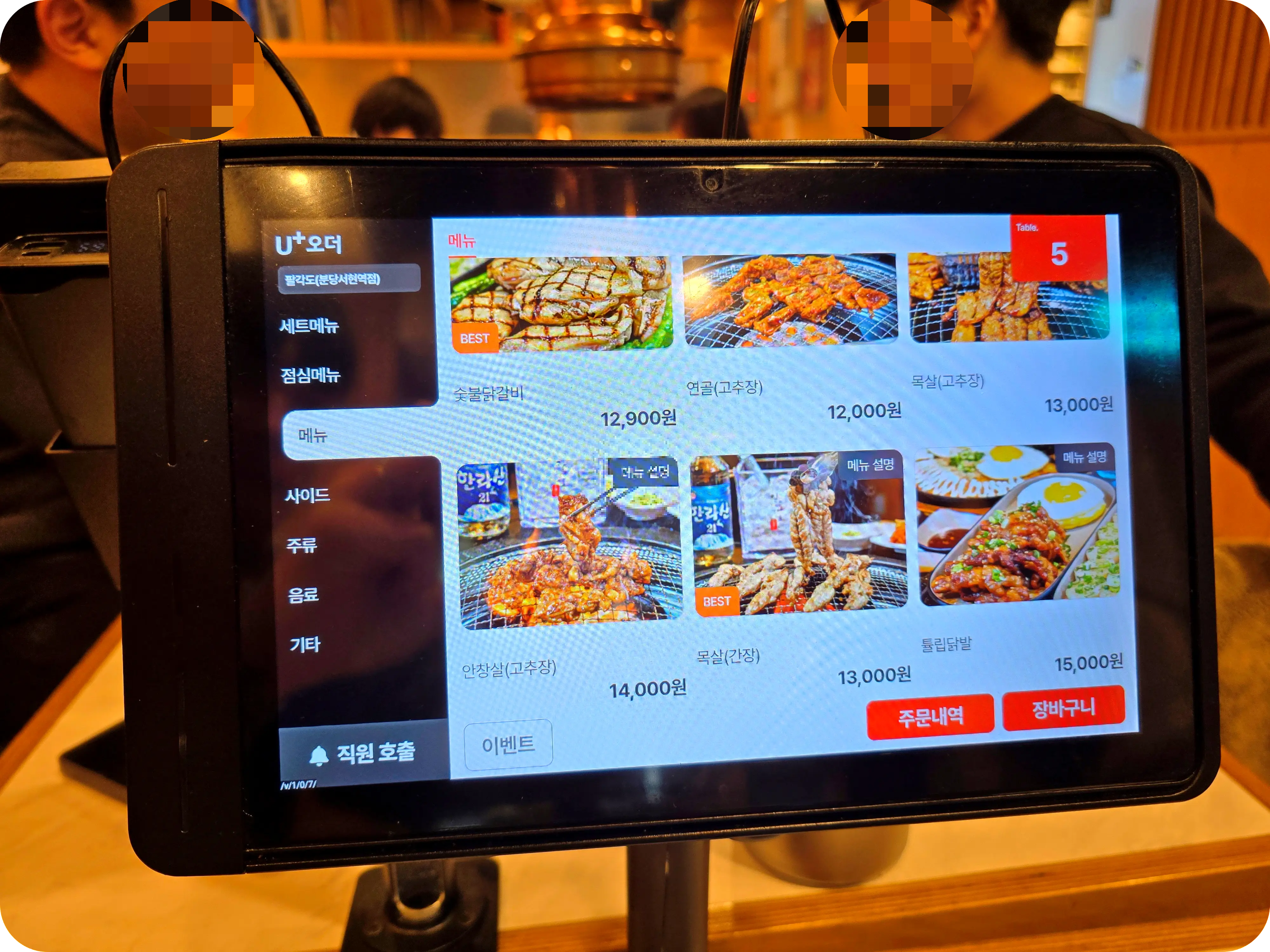 주문과 동시에 차려지는 한상. 팔각도라는 이름답게 팔각형의 불판이 있는데 진짜 신기하게 생겼다. 이런 불판은 처음보며 한쪽면으로 반찬과 소스를 올려주는데 딱 맞아떨어지는 게 너무 마음에 든다.