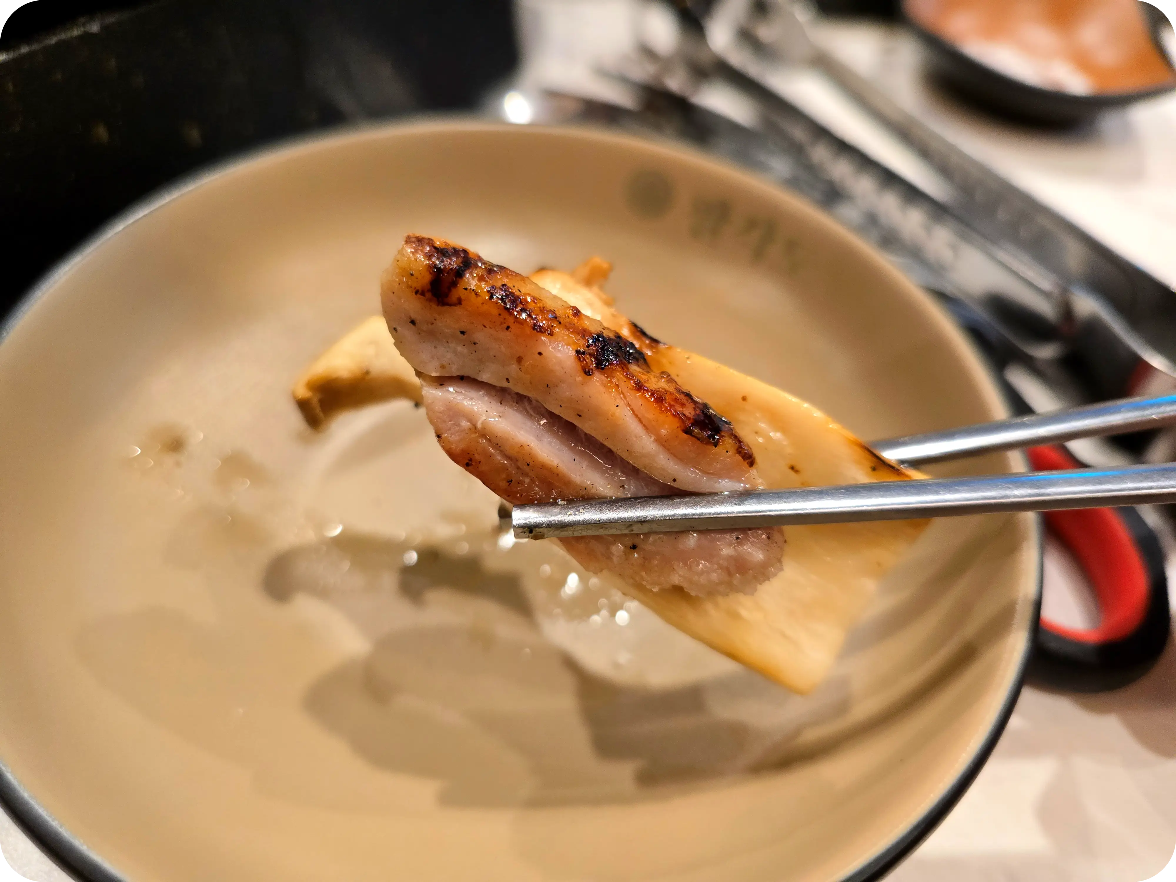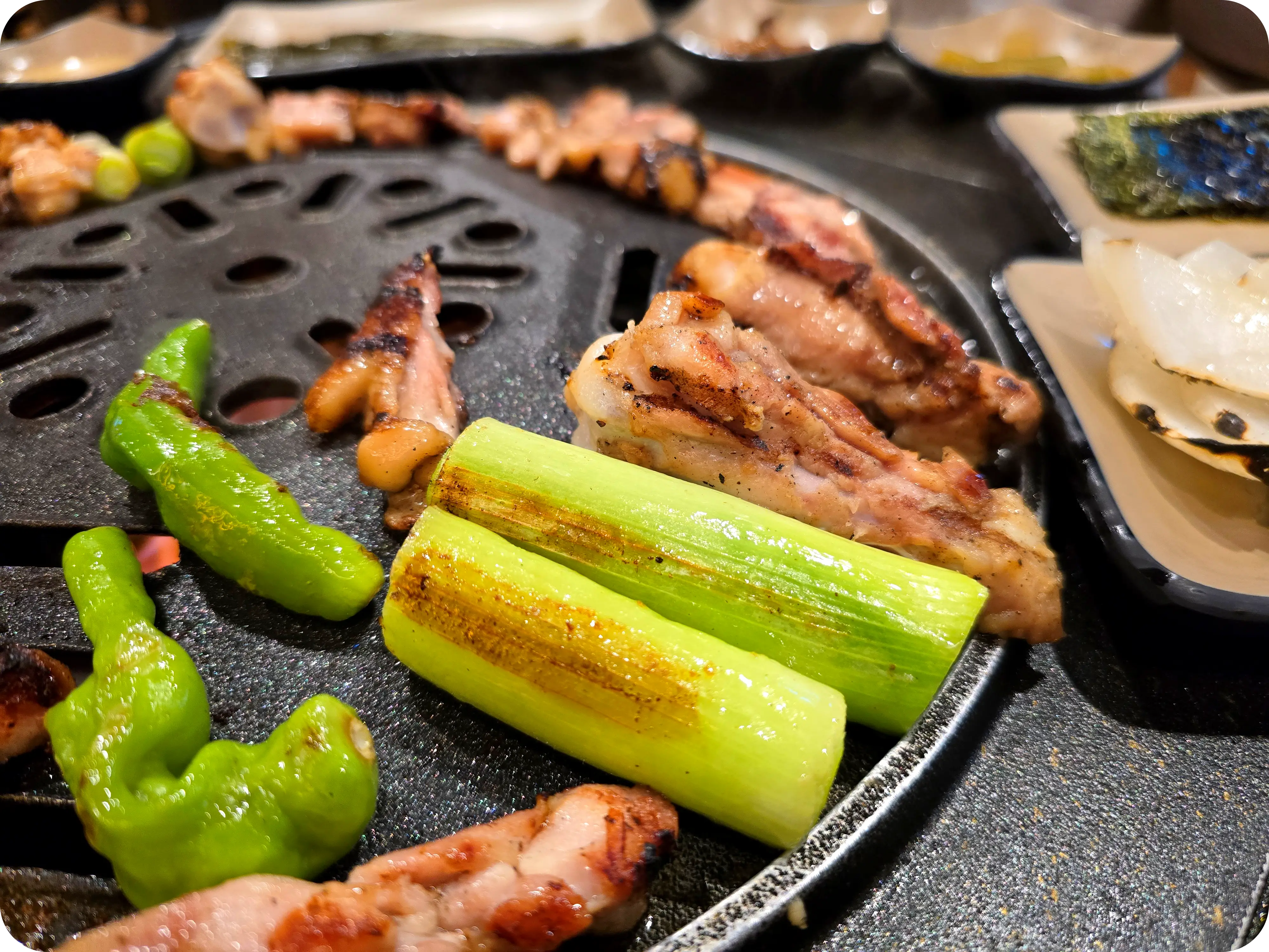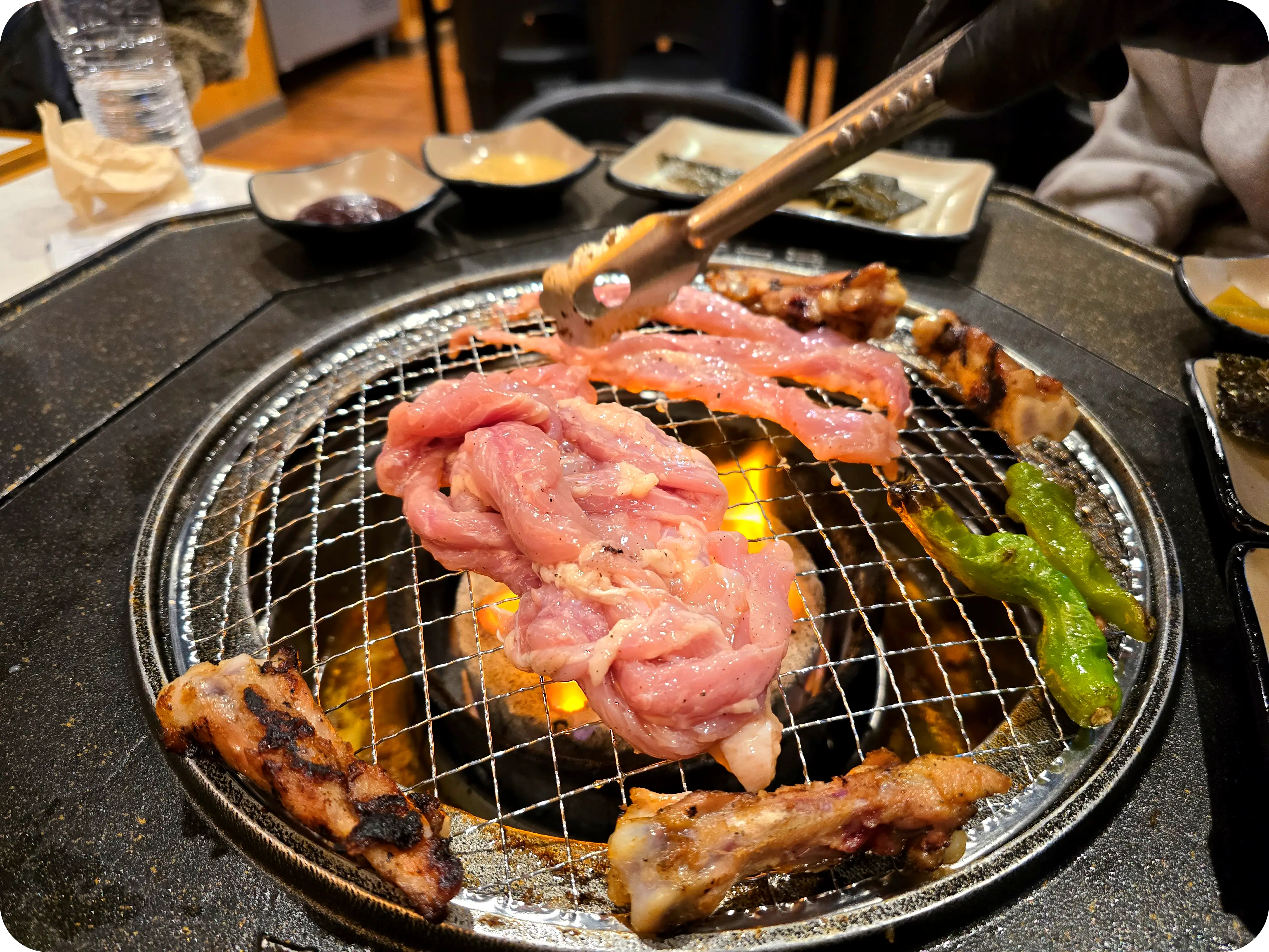 먹다보니 불판이 바뀌었다. 갑자기 석쇠로 바뀐 이유는? 우리는 닭목살을 추가로 주문했다. 목살구이 한 번도 안 먹어본 사람은 있어도 한 번만 먹은 사람은 없을 정도로 존맛!