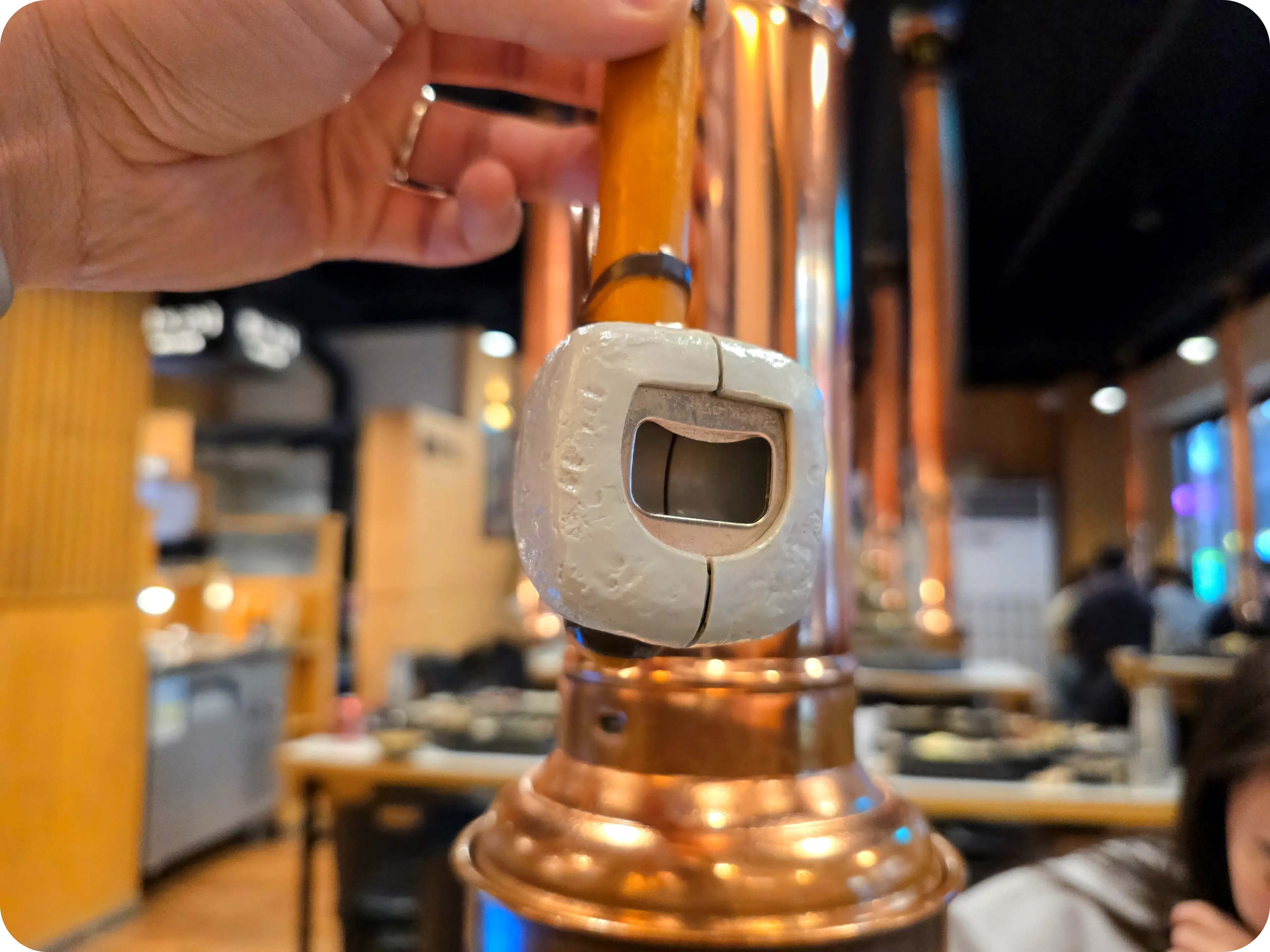 ㅋㅋㅋ 먹다보니 연통에 웬 돌망치가 달려있길래 이게 벨 대신 연통을 치라는 건가? 싶었는데 알고 보니 병따개였다 ㅋㅋㅋ 벨은 상 옆면에 있으니 괜한 연통을 때리지는 말자