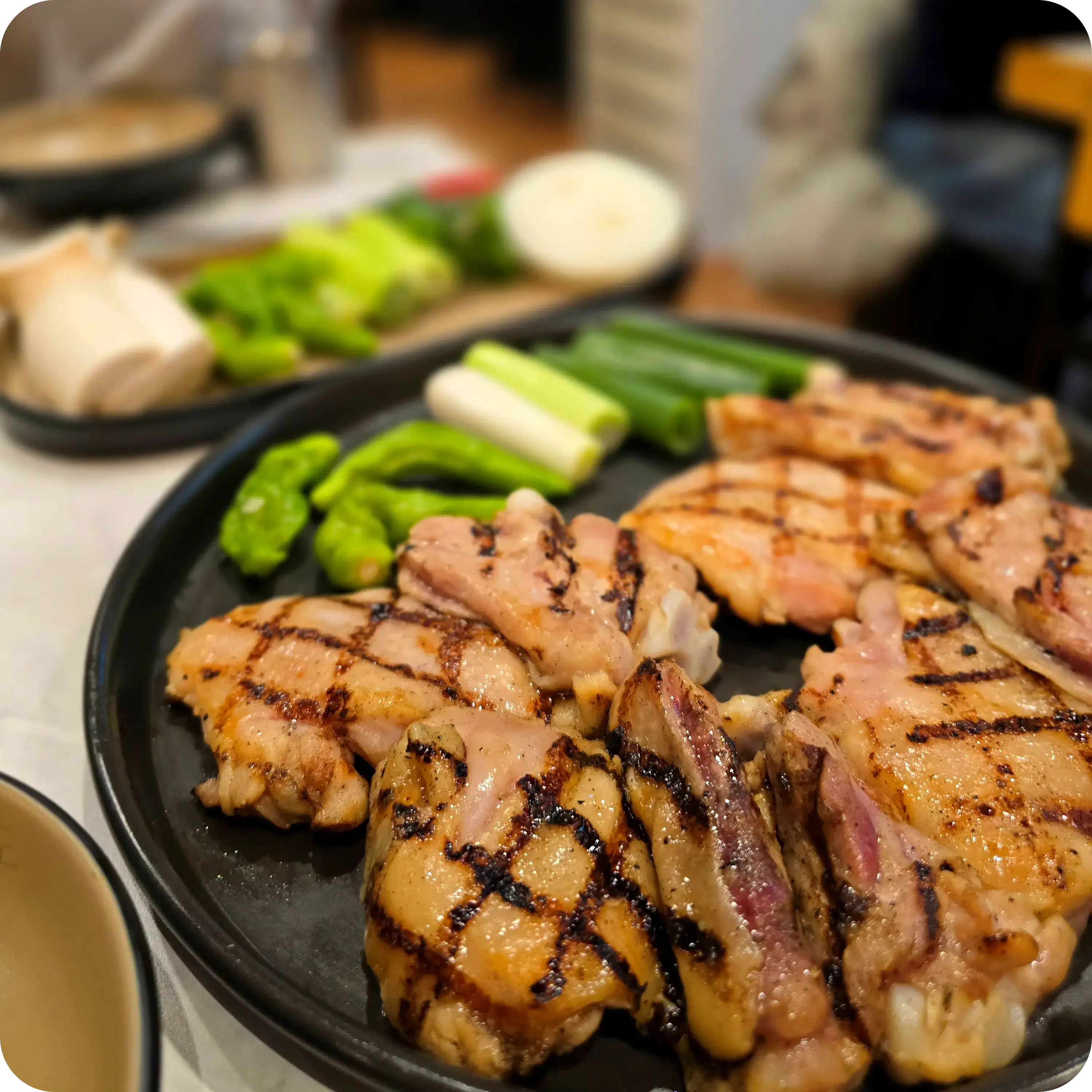 여자친구가 먹고나서 눈을 떠버린 닭목살구이. 여자친구가 닭갈비보다 훨씬 맛있다고 했다. 진짜 쫄깃쫄깃하며 오독 씹히는 닭연골이 숨어있는 그 식감 때문에 닭목살을 먹는다.