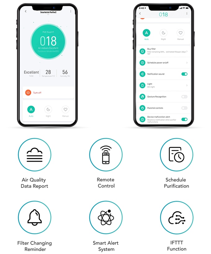 스마트한 제품이 특징인 샤오미의 생태 브랜드답게 스마트미 공기청정기는 미홈, 구글 어시스턴트, 알렉사와 연동이 가능하다. 샤오미 어플을 이용하기 때문에 샤오미의 다양한 생태 제품들과 홈 IoT 시스템을 갖출 수 있다.